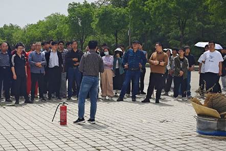 随后,保卫处副处长袁坤向全体参训人员详细讲解灭火器材种类、使用方法等消防安全知识,并进行现场灭火示范操作。参训师生根据动作要领完成灭火器灭火实操演练。