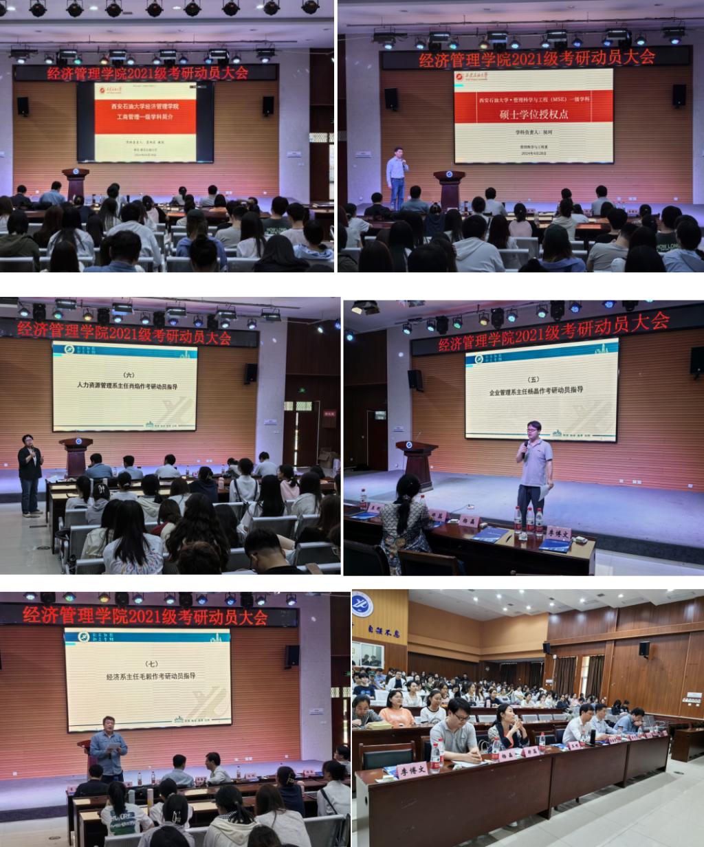 为进一步加强学风建设,激发学生的考研积极性,4月28日下午,经济管理学院在鄠邑校区就业指导中心多功能厅举办2021级考研动员大会。经济管理副院长李春霄,工商管理学科负责人裴旭东,会计学系副教授郑蕊,管理科学与工程系主任侯珂,企业管理系主任杨晶,人力资源管理系主任肖焰,经济系主任毛毅,2021级辅导员刘清及全体意向考研学生参加本次动员大会,大会由经济管理学院党委副书记王刚主持。