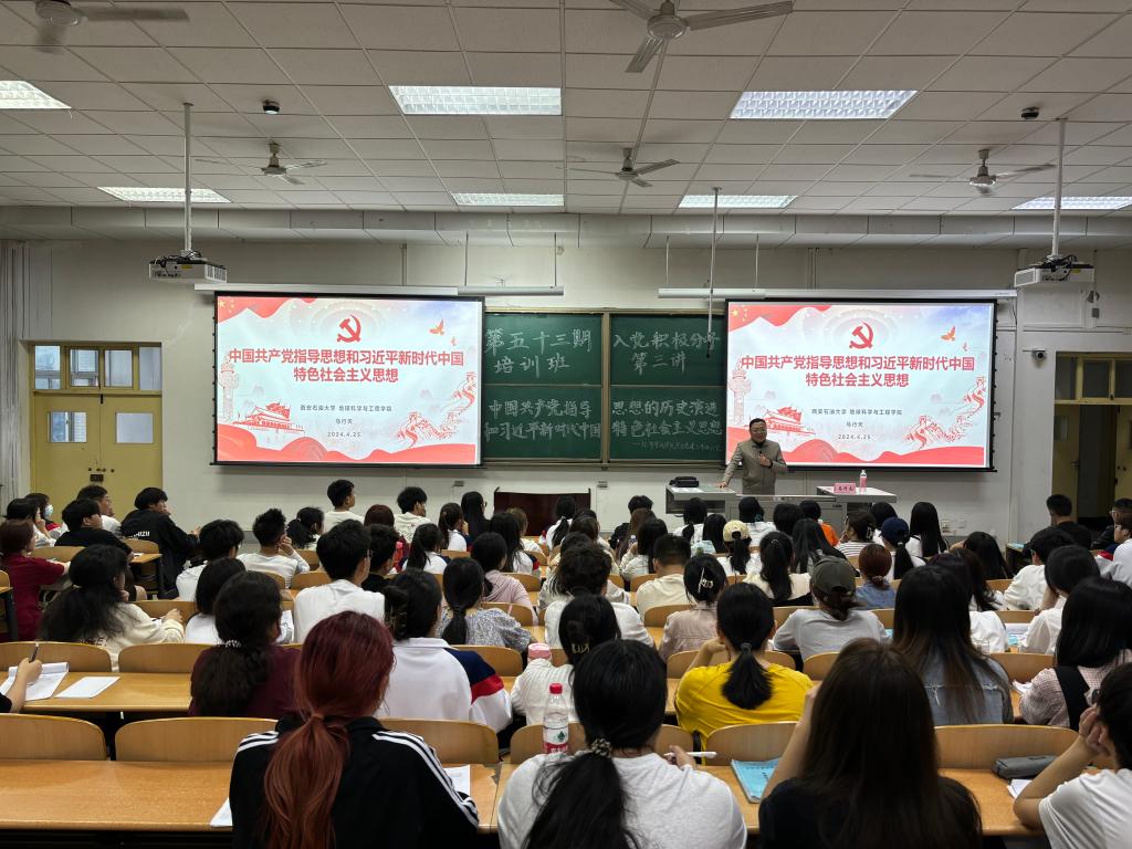为进一步提高入党积极分子的政治觉悟和理论修养,树立正确的入党动机,5月8日,经济管理学院第五十三期入党积极分子培训班第三讲于鄠邑校区博览楼239教室开讲,本次党课由地球科学与工程学院党委书记马行天主讲,第五十三期入党积极分子全体成员参加。