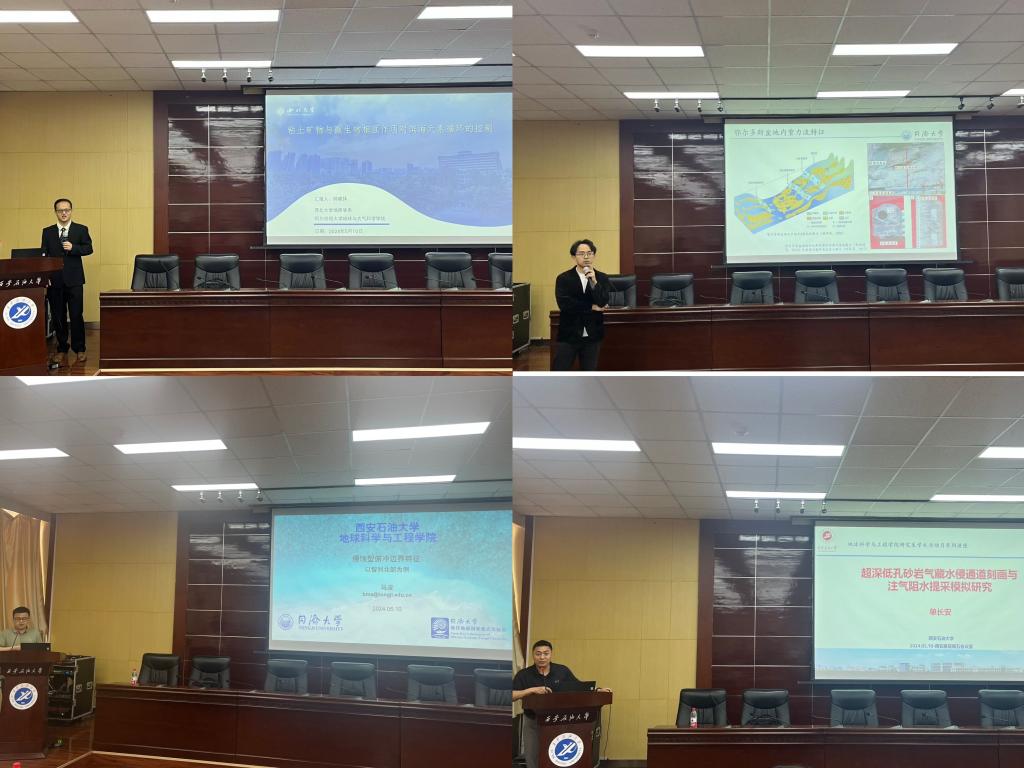 在大会报告环节,西北大学教授、国家优青郝威铎,同济大学研究员、上海市领军人才吴南,同济大学研究员、上海市白玉兰人才马波以及Beat365唯一官方网站副教授单长安为师生们作了精彩纷呈的学术报告。其中,郝威铎教授作了题为《粘土矿物与微生物相互作用对滨海微量元素循环的控制》的专题报告;吴南研究员作了题为《深海重力流的识别标志与油气地质意义》的专题报告;马波研究员作了题为《侵蚀型俯冲边界特征-以智利北部为例》的专题报告;单长安副教授作了《超深低孔砂岩气藏水侵通道刻画与注气阻水提采模拟研究》的专题报告。报告结束后,4位校内外专家与现场师生进行了深入的交流和讨论,现场气氛热烈。最后,副院长党伟对4位专家带来的精彩报告表示感谢,并提到此次报告拓宽了专业研究视野,为多学科交叉研究注入新的理念,全体师生获益良多。