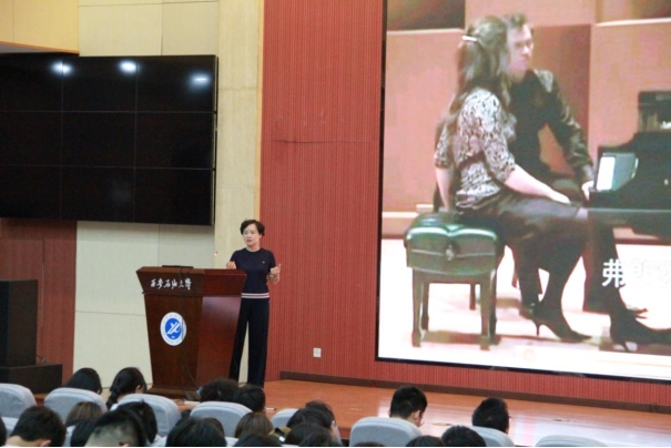 后续薛安玲老师重点讲述中国的古诗词艺术歌曲特点,作为中国特色的艺术歌曲体裁被不断的创作和传播,它结合了传统诗词文化与现代声乐艺术,继承和弘扬我国的优秀传统文化精髓,体现中国文化的独特魅力,展现中国文化的审美价值,还能够使中外文化更好的交融,深受大众的喜爱。现场师生一同欣赏了《玫瑰三愿》《锦瑟》《静夜思》等作品,薛安玲老师解答了同学们的疑问。