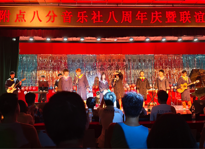 5月18日晚7点,石油工程学院附点八分音乐社在腾辉大学生活动中心举办八周年庆典暨联谊晚会。晚会邀请长安大学、西安建筑科技大学音乐社团学生代表、各院系文艺部学生代表、兄弟社团学生代表参演并观看。