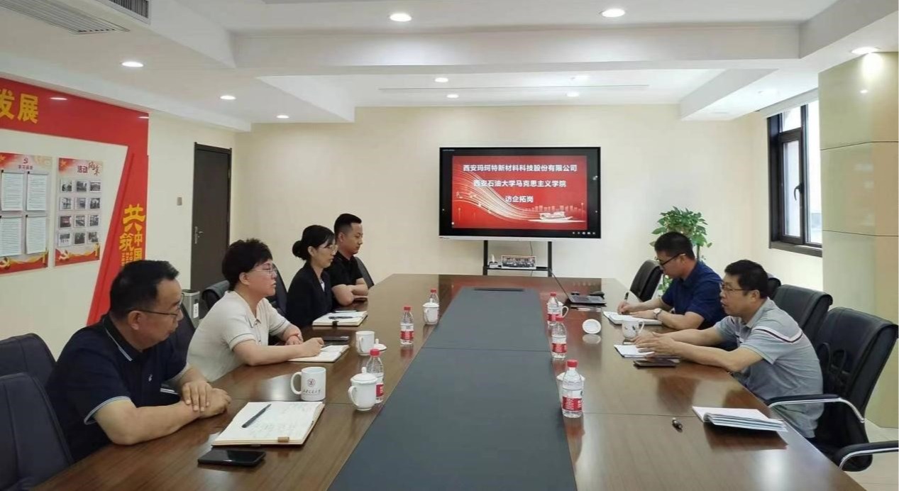 5月22日上午,马克思主义学院党总支书记、副院长张伟一行深入鄠邑区沣京工业园开展访企拓岗促就业专项行动。经过前期广泛调研,张伟书记选取了园区内的西安玛珂特新材料科技股份有限公司进行了精准交流。任晓辰董事长、李春梅书记热情接待来访人员。