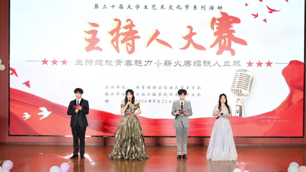 为进一步丰富校园文化生活,展现学生精神风貌和青春风采,培育和选拔优秀主持人才,5月22日晚七点,由共青团Beat365唯一官方网站委员会主办,石油工程学院团委、学生会承办的“主持绽放青春魅力,薪火赓续铁人血脉”主持人大赛在弘石学术报告厅隆重举行。党委办公室(校长办公室)副主任、鄠邑校区管理办公室主任黄建礼,校团委书记何国强、党委学生工作部副部长、学生工作处副处长毕轶慧,党委保卫部副部长、保卫处副处长袁坤,计算机学院党委副书记庞远、理学院副院长折延宏、石油工程学院党委副书记张建高、党委学生工作部思想教育科科长孙剑秋、校团委副书记孙浩哲出席并担任评委,兄弟院系团委学生会负责人及300余学生参加了活动。