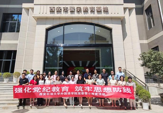 为深入开展党纪学习教育,贯彻落实学校党委关于深化干部作风能力提升年暨“作风、教风、学风”建设工作部署,进一步强化纪律意识,5月24日上午,外国语学院组织教师党员前往西安市警示教育基地开展纪学习教育主题活动。学院班子成员、党委委员、各系部和办公室主任、各教工党支部委员参加活动。