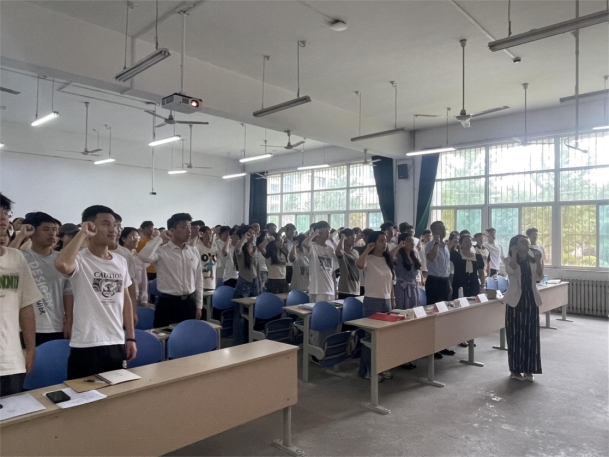潘娜以《青春向党筑梦远航 建功新时代》为题,为全体毕业生党员讲授了主题党课。她对全体毕业生党员提出了三点期望:一是不忘初心,牢记党员身份;党员“第一身份”既是荣誉,更是责任;既是称号,更是要求。各位毕业生党员在步入社会后要时刻牢记共产党员的“第一身份”,在社会各个领域充分发挥党员的先锋模范作用,在方方面面始终走在时代前列。二是信仰铸魂,坚定理想信念;学校“四实一新”的人才培养特色,是学校坚持社会主义教育方向、尊重教育规律的积极探索,也是始终不渝地将石油精神、铁人精神与日常教育教学紧密融合的不懈实践,更是我们这所立足西部、肩负国家能源战略大发展使命院校响应“国之大者”,为党育人、为国育才信念的高度凝练。同学们走出校园后,要继续坚定理想信念,发扬“四实一新”特色,为母校擦亮金名片。三是砥砺奋进,勇担时代使命;作为一名共产党员要弘扬党的优良传统,发挥模范作用,坚守初心使命,在青春赛道上不畏艰险、奋力奔跑、勇挑重担,用实际行动践行青春誓言,充分展示出青年人在新时代昂扬向上的精神风貌。随后,潘娜带领全体毕业生党员重温了入党誓词。