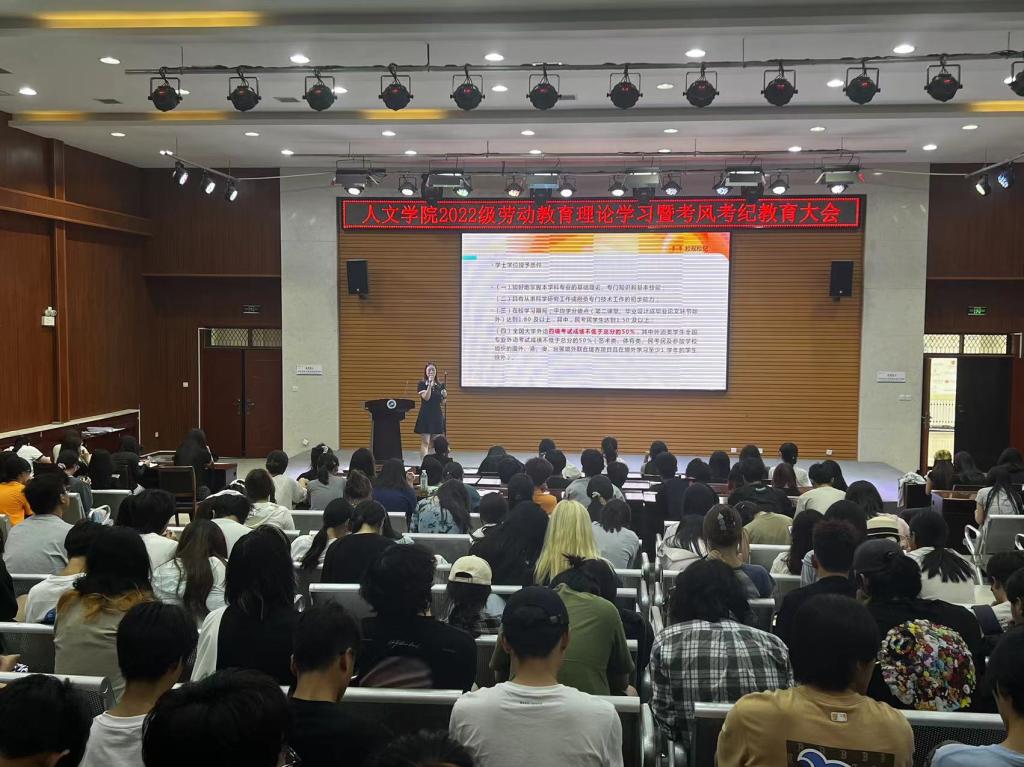 为进一步营造良好的学习氛围,推进学院学风建设及班级建设,通过“劳动教育”全面育人、综合育人、实践育人,促进学生全面发展。6月12日下午,人文学院2022级、2023级分别在崇文楼118及博览楼A139召开劳动教育理论学习暨考风考纪教育大会,2022级、2023级全体学生出席,辅导员范嘉欣、王凯杰主持。
