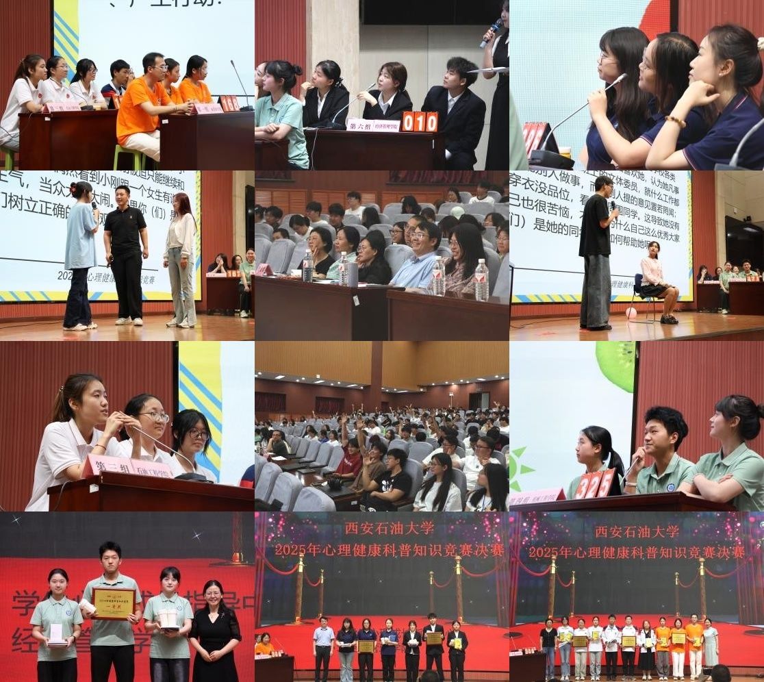 经院级初赛、校级复赛,来自新能源学院、土木工程学院、石油工程学院、机械工程学院、马克思主义学院和经济管理学院的六支队伍进入校级决赛。西安电子科技大学心理健康教育中心主任魏萍,化学化工学院党委书记高小明,学生工作部副部长、国家三级心理咨询师毕轶慧,学生心理成长指导中心主任肖琼,学生心理成长指导中心教师魏晓言担任评委。魏萍教授、肖琼教授担任比赛仲裁。