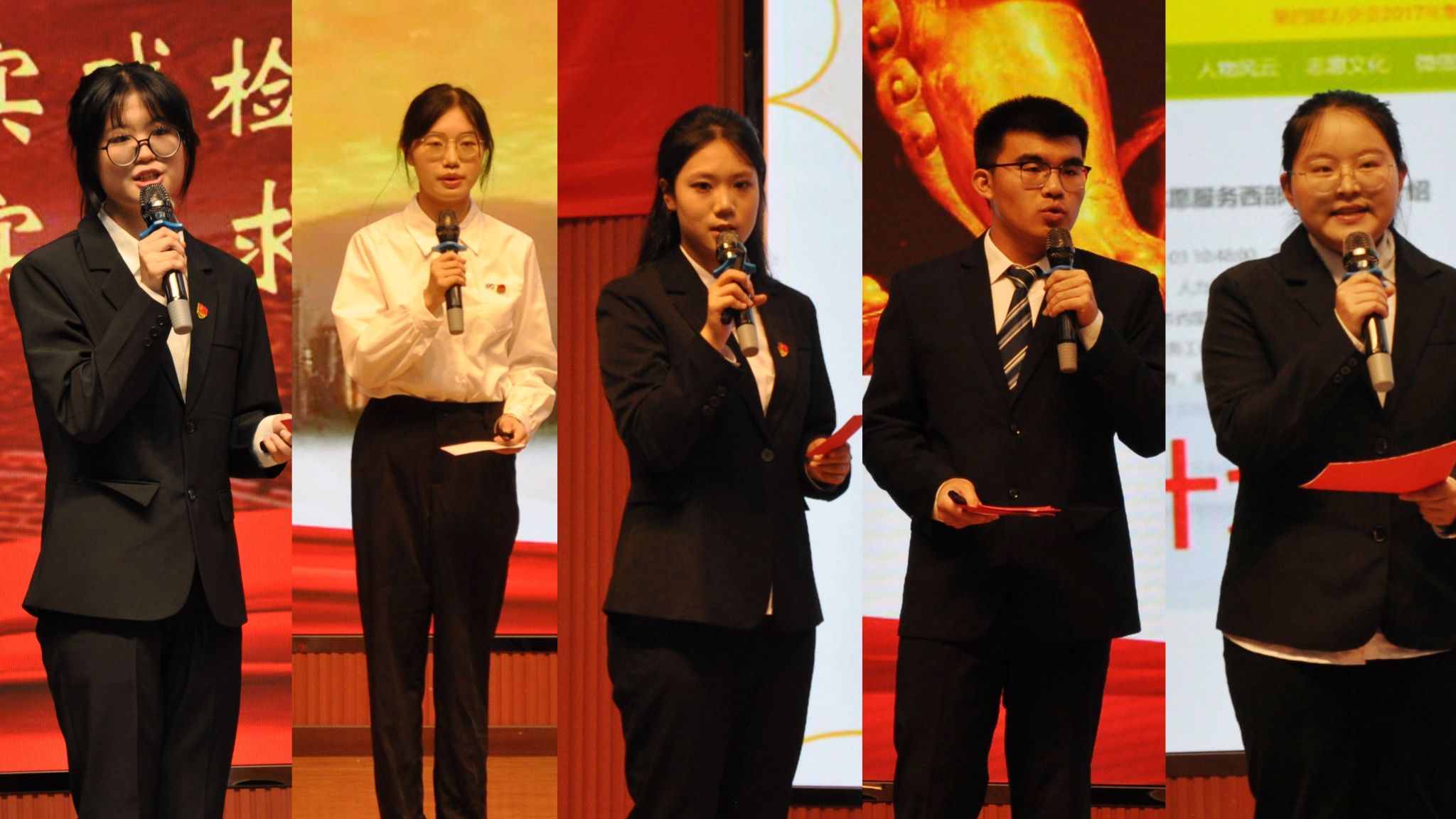 张浩然为第三十三第入党积极分子培训班优秀学员颁发荣誉证书。宋兴淼汇报了本期入党积极分子培训班培训情况。史阳为“油”你来讲获奖同学颁发荣誉证书。