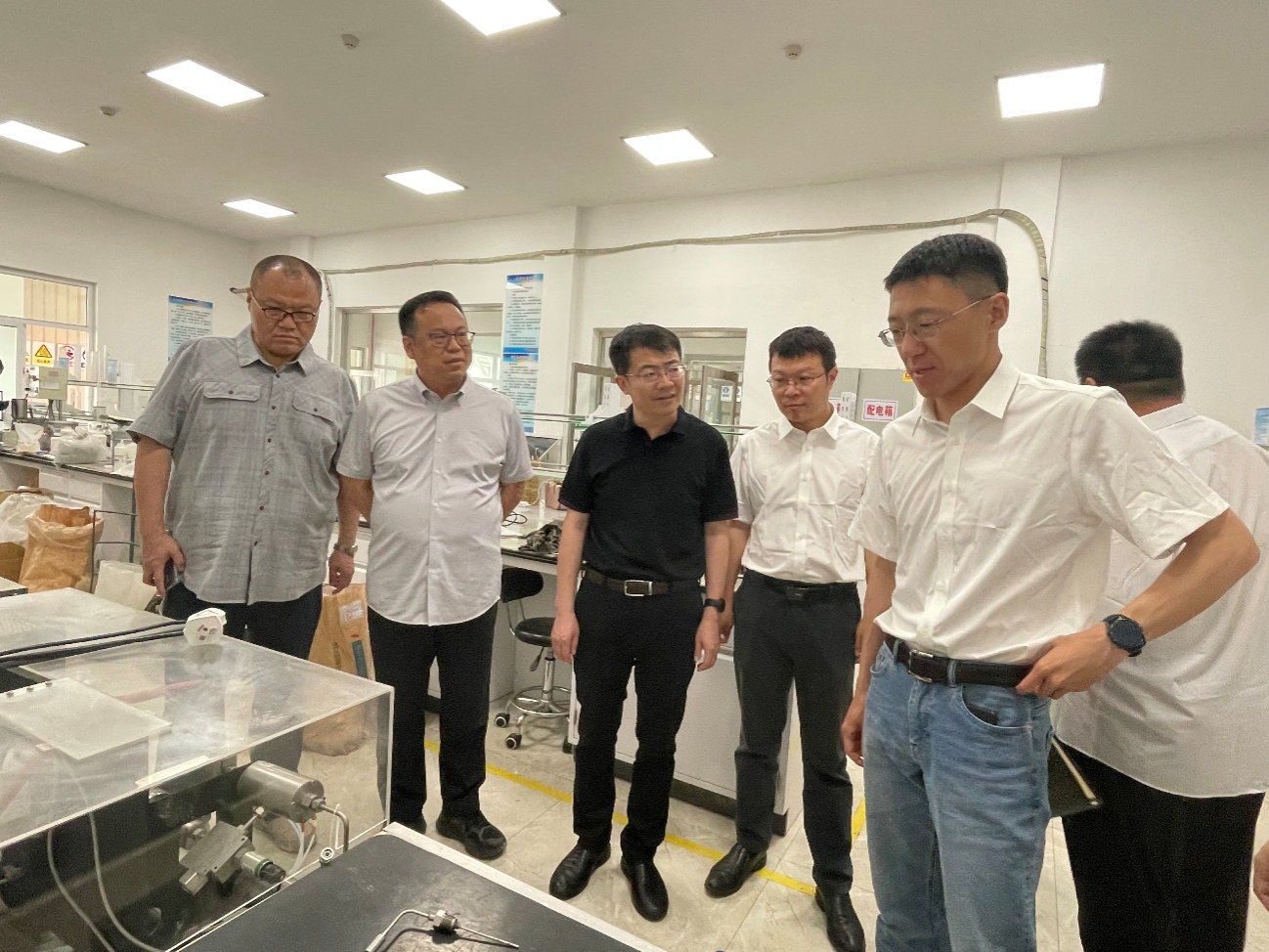 揭牌仪式后,高小明一行参观了渤海钻探第一固井公司工程技术研发中心实验室和自研产品展厅。