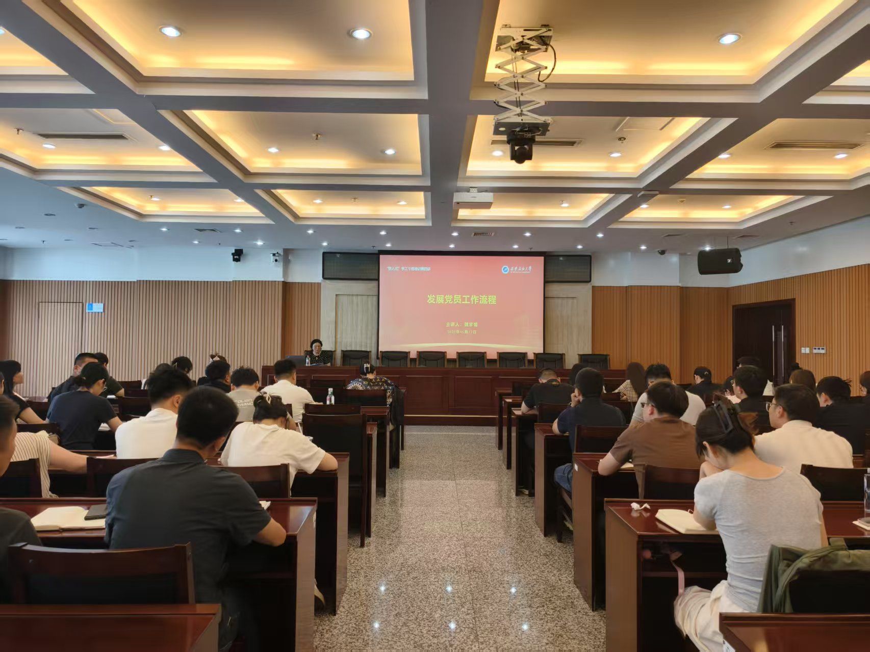魏梦媛从新形势下发展党员的工作要求出发,详细解读了《中国共产党章程》和《中国共产党发展党员工作细则》等党内法规,强调了发展党员工作的“控制总量、优化结构、提高质量、发挥作用”十六字总要求。她通过PPT展示和现场讲解相结合的方式,将发展党员工作细分为五个阶段、25个具体步骤,逐一进行了剖析和说明,就发展对象的确定和考察、预备党员的接收、教育考察和转正等关键环节进行了重点讲解,并通过案例分析,指出了在党员发展过程中容易出现的错误和问题,提出了相应的解决措施和建议。