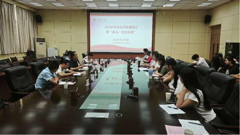 6月17日下午,马克思主义学院在雁塔校区西阶第一会议室举办2025届研究生毕业生座谈会暨“最后一堂思政课”。校党委副书记程永清、学院党委书记张伟、院长张海涛、研究生导师代表董春诗、刘辉以及全体毕业生参会,会议由张伟主持。