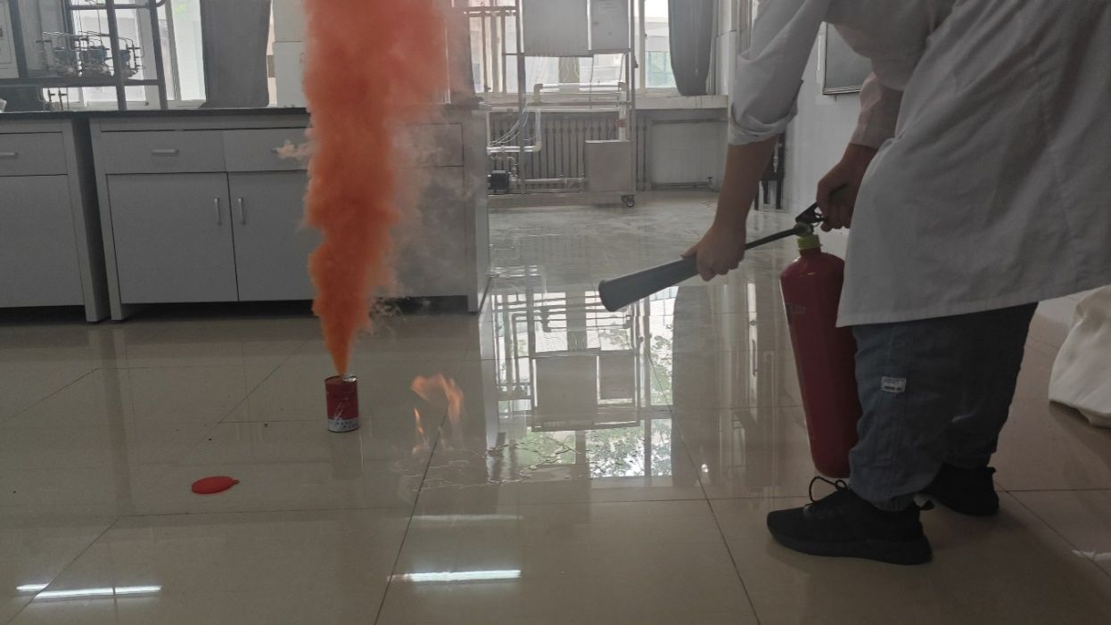此次演练模拟了实验过程中酒精泄漏并发生火灾的事故场景。演练前化学化工学院实验中心制定了详细的方案,从人员安排、环境布置、逃生线路、集结地点均作了具体安排,力求演练真实、有效。实验中心主任张新强老师进行了现场讲解,要求师生要熟悉逃生通道,会判定火情,掌握求救方法、撤离方法、灭火器使用方法等。