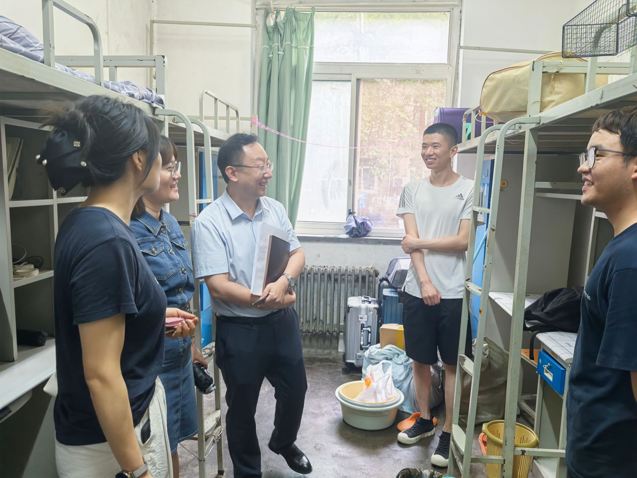 副校长种宇宏亲临雁塔校区搬迁现场,他详细询问流程安排、物资保障与人员调配情况,提出指导意见。种宇宏走进宿舍亲切看望慰问搬迁的研究生同学们,细心询问同学们的搬迁情况,对大家克服天气困难、积极配合搬迁表示肯定,叮嘱同学们注意安全,尽快适应新环境。并表示学校将持续关注研究生在雁塔校区的学习生活,为研究生科研与学术发展创造更优条件。种副校长的看望和慰问第一时间将学校领导的关怀与温暖传递给了学生。