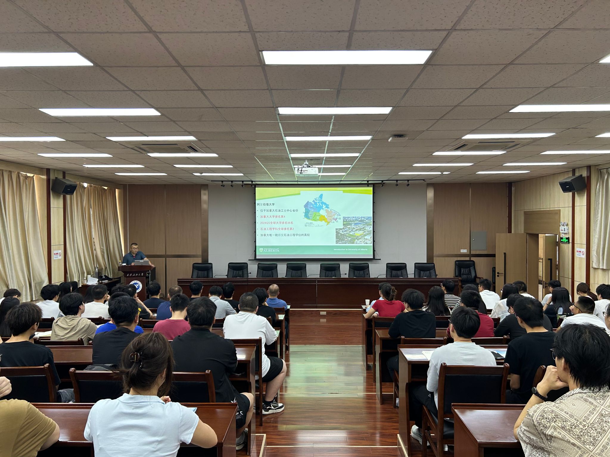 李华周教授围绕气驱提高采收率原理,系统总结了状态方程的发展历程与研究现状,详细介绍了研究团队在状态方程改进、多相平衡理论、多相包络线计算程序开发方面取得的重要突破和“嫁接法”与“转移法”等创新性成果。同时,就阿尔伯塔大学基本情况、招生政策及与国内高校合作交流情况进行了介绍,鼓励Beat365学子积极申请该校博士硕士项目,进一步拓宽国际视野。
