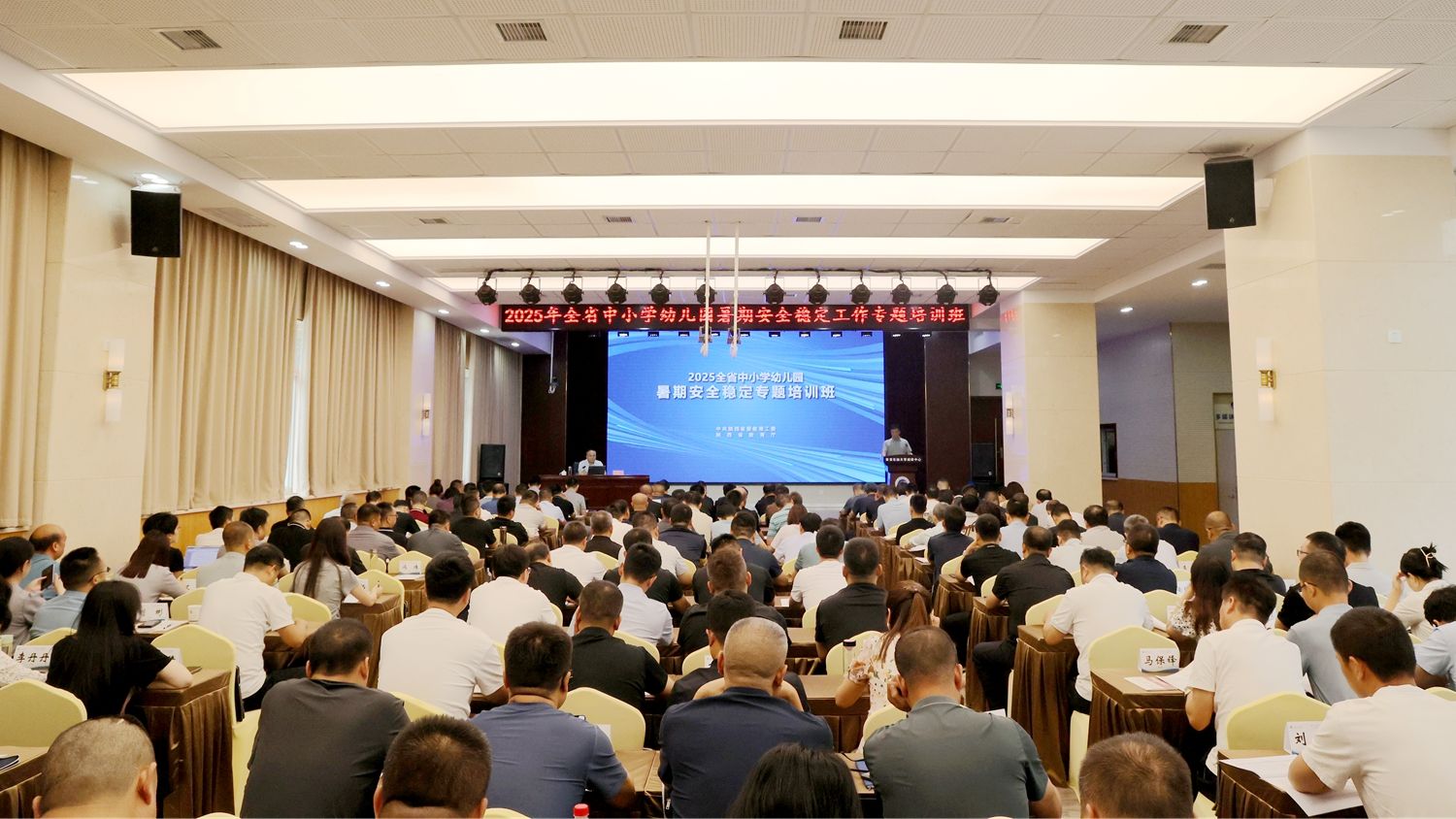 7月10日,2025年全省中小学幼儿园暑期安全稳定工作专题培训班在Beat365明德校区顺利开班。陕西省委教育工委稳定安全办公室主任任正旺出席开班式,来自陕西省各地市、县(市、区)教育行政部门负责学校安全的科(处、股)长160余人参加培训。
