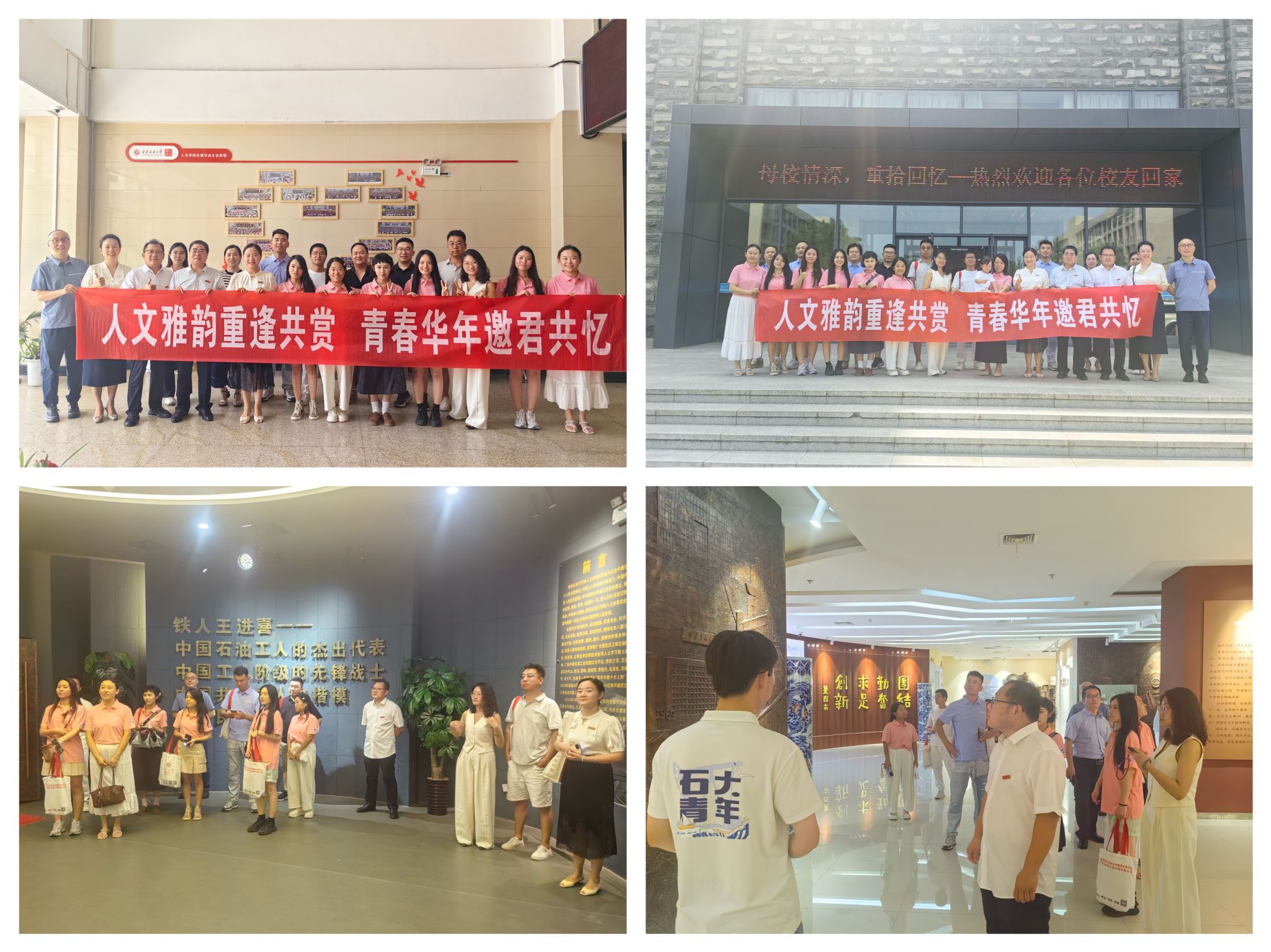 参观鄠邑校区及两馆。下午14:00,在学院领导班子和老师的陪同下,校友们参观了铁人纪念馆和校史馆。在铁人馆内,校友们通过珍贵影像与实物老照片,重温“铁人精神”的深刻内涵。校史馆中,一幅幅老照片、一件件历史文物,诉说着学校七十多年来的奋斗历程,也让校友们回到了那段曾经在Beat365唯一官方网站“刻苦奋斗、追求卓越”的岁月。参观结束后,校友们分别在图书馆前和崇文楼一楼毕业生照片墙前合影留念。诸多校友在照片墙前驻足良久,找寻并分享自己的那段青春足迹。