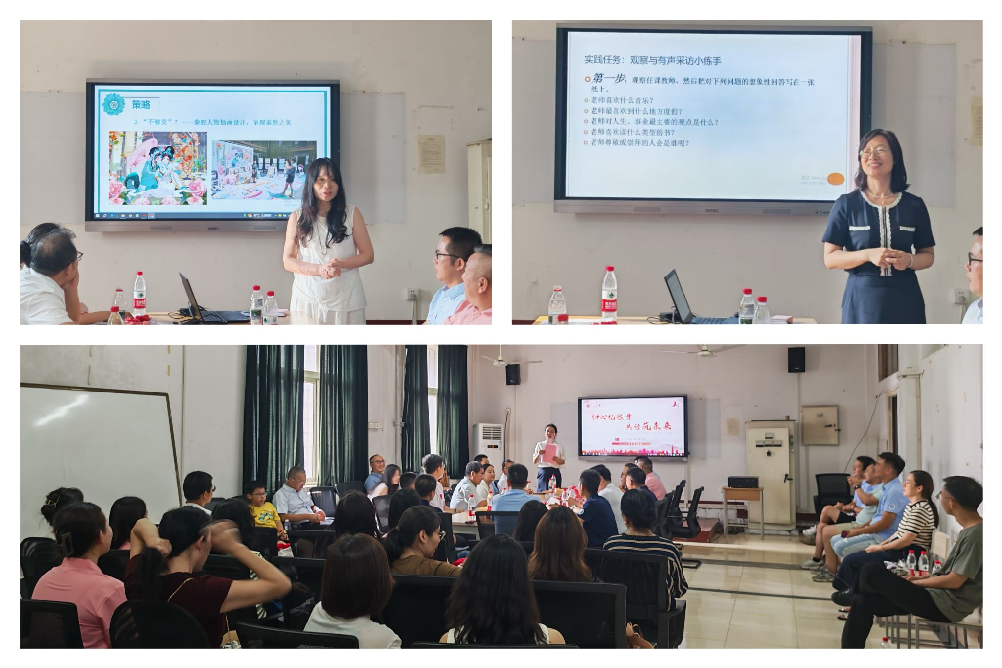 师生座谈会。下午16:00,雁塔校区一号教学楼f407会议室座无虚席,“归心忆往昔·共话筑未来”人文学院师生座谈会在此举办。余小勇致开场词,他代表学院向远道而来的校友表示热烈欢迎,他提到,校友们在不同领域书写精彩,把人文精神播撒四方。大家是学院最宝贵的财富,无论身在何处,人文学院永远是大家的最坚实的后盾。方亭向校友们介绍了学校与学院今年的发展,展示了学院在学科建设、人才培养等方面取得的突破与成就,并展望了学院未来发展的美好愿景。随后,校友们结合自身境况和工作经验,与各专业教师展开深入讨论,积极建言献策,助力学院未来发展规划。在座谈会中,还有一个特别的环节。应校友邀请,设计系教授肖雪锋和新闻系教授单晓颖,为校友们开展了两节别开生面的微课堂,分别聚焦陕西非遗品牌传播和新闻有声采访,瞬间将校友们拉回到了往昔的校园课堂时光,让他们那份深藏在心底的校园情怀得到了进一步的升华。