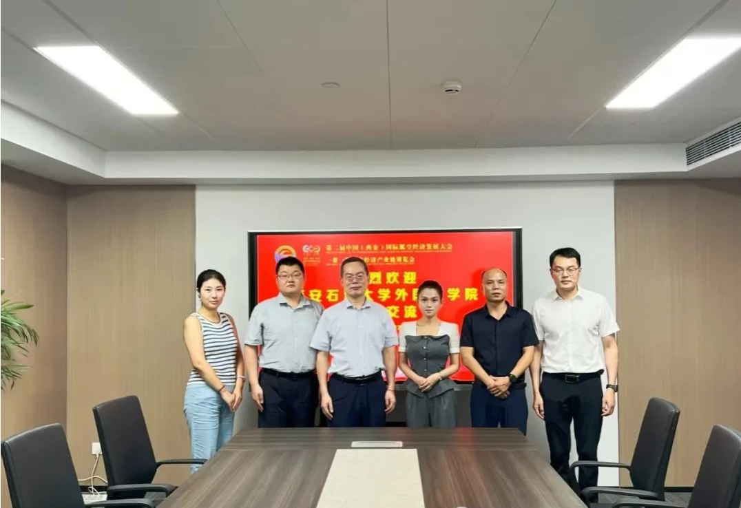 为进一步深化校企合作,搭建高质量实践育人平台,7月17日,外国语学院书记张建高、副书记邱岭、副院长邓林、多语种部教师张雨青一行赴陕西陆亚会展服务公司的第二届中国(西安)国际低空经济发展大会组委会走访调研,开展实习基地建设和访企拓岗工作。组委会负责人曹双成、办公室主任王园园带领核心团队热情接待,双方就本届大会的战略规划、实习合作、创新实践等议题展开了富有成效的深入交流。