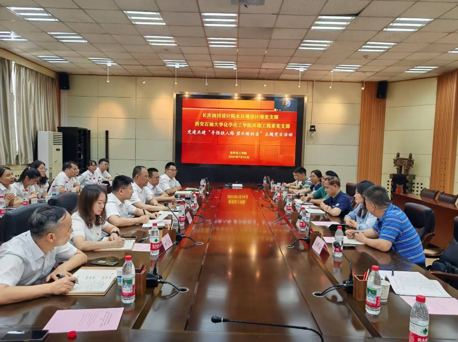应长庆油田设计院水环境设计部党支部的邀请,2025年7月24日,化学化工学院环境工程系党支部与长庆油田设计院水环境设计部党支部联合开展“寻根铁人路 碧水砺担当”党建共建主题党日活动,通过追寻红色基因、参观学习、座谈交流,推动铁人精神与油田水环境保护理念深度融合。化学化工学院党委书记孙会珠、副书记乔晓、环境工程系党支部书记屈撑囤、化工系教工党支部书记黄风林以及环境工程系党支部全体党员参加了活动,本次活动由环境工程系党支部书记屈撑囤教授主持。