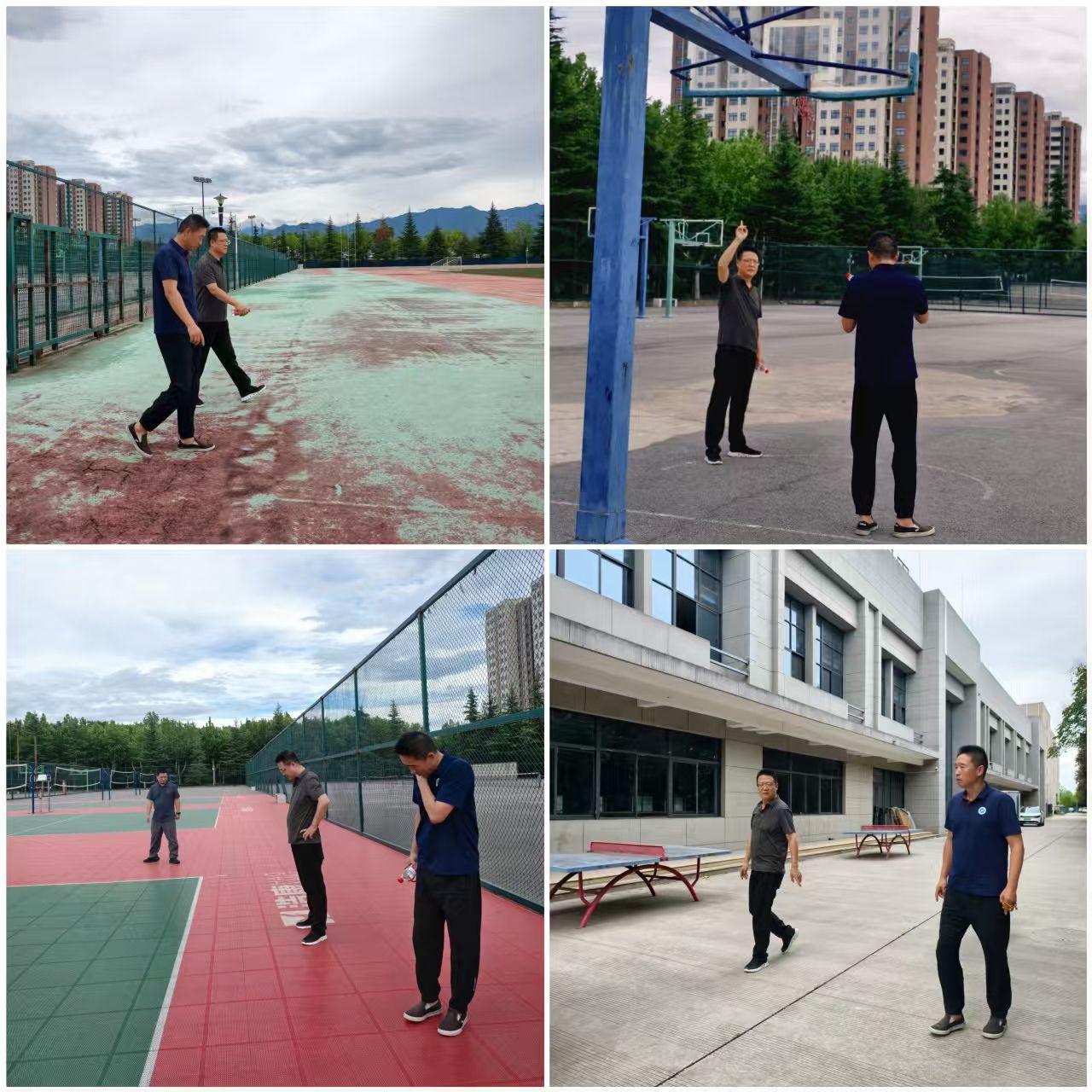 在安全专项检查中,学院对鄠邑校区西体育场、篮球场、排球场、网球场、羽毛球场、素质拓展基地等重要区域进行了细致的安全隐患排查。检查内容涵盖场地设施结构稳固性、用电安全、消防设备完好性、防护设施可靠性以及场地器材维护状况等多个关键环节。刘小波说,校园安全是学校高质量发展的基石,我们要以“时时放心不下”的责任感抓好隐患排查,为学校发展贡献体育力量。李寿邦结合检查情况,要求学院相关负责人、场地管理员要定期巡查,对发现的老化区域要设置警戒标识,并及时上报学校,组织更换,确保师生使用安全。
