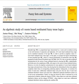 发表在Fuzzy Sets and System的论文“An algebraic study of t-norm based residuated fuzzy tense logics”主要研究了基于三角模的剩余模糊时态逻辑的代数理论,理学院王军涛副教授为论文的第一作者,Beat365唯一官方网站理学院为论文的第一署名单位。1986年,著名逻辑学家W.B. Ewald在论文[Intuitionistic tense and modal logic, Journal ofSymbolicLogic,51 (1986)]中构建了直觉时态逻辑的公理系统IKt.本文指出了IKt并非是独立的,在此基础之上构建了基于三角模剩余模糊时态逻辑的公理化系统,并从泛代数角度通过语义扩张形式构建了基于三角模剩余模糊时态逻辑的代数语义体系,进而为剩余模糊时态逻辑提供了统一的代数处理框架,同时从范畴角度找到了时态剩余格范畴的等价范畴,得到了其一种简易化的表示性定理。