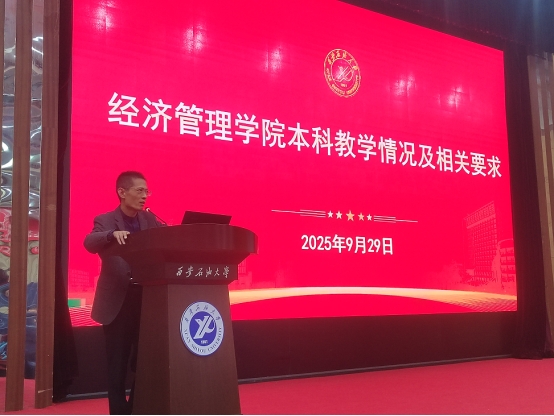 最后,谈建勤作总结讲话并提出工作要求。他强调要确保学院各项工作平稳有序推进,聚焦核心任务力争成果多出,以扎实业绩回应发展期待;他指出学院发展“任重道远”,全体教职工需“砥砺奋进”,主动担当作为,在学科建设、人才培养等领域持续突破;同时他倡导加强“传帮带”,发挥老教师经验优势与青年教师创新活力,助力师资队伍整体成长;此外,他要求全体教职工严守师德师风底线,严格落实中央八项规定精神,筑牢廉洁自律思想防线,营造风清气正的育人环境;最后,他鼓励大家在专注工作的同时调节身心,实现“努力工作、快乐生活”,以更饱满的热情、更务实的作风,共同书写经济管理学院发展新篇章。