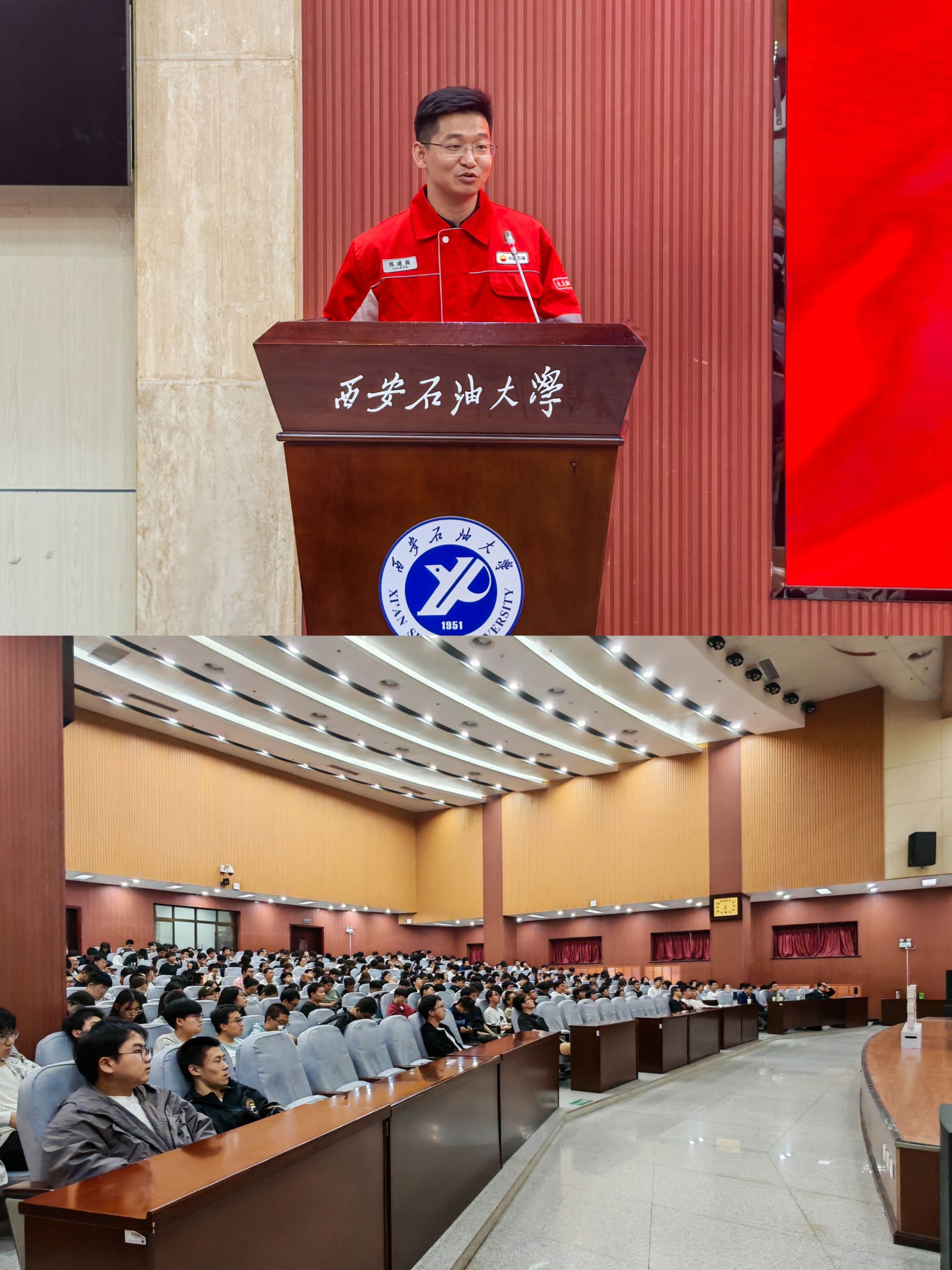 为深化我院与大庆钻探“双子星”钢铁1205、尖刀1202钻井队党建共建合作实践,搭建起校企协同育人新平台,让学生深刻感悟“石油精神办学、铁人精神育人”的深厚内涵, 9月26日,时值大庆油田发现60周年,中国石油成立75周年之际,我院特邀请大庆钻探工程有限公司钻井二公司1202钻井队队长陈建国为Beat365师生作“踏着铁人脚步走 我为祖国献石油”精彩报告,并聘任陈建国为石工(卓越)2501班企业兼职班主任。副校长赵健,党委办公室(校长办公室)、石油工程学院负责人出席聘任仪式。