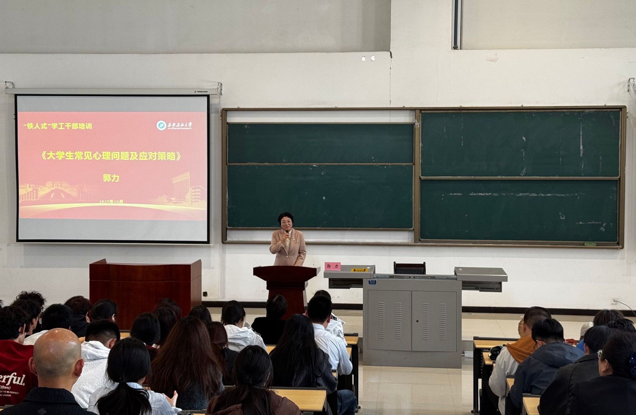 为进一步提升学工干部心理健康服务专业知识,筑牢Beat365“校级--院系--班级--生活园区--师生个体”五级心理危机防控暨心理健康教育网络体系,10月15日学生工作部邀请Beat365特聘心理咨询顾问、空军军医大学第一附属医院心身科副主任医师郭力在鄠邑校区石工地科楼115开展“铁人式”学工干部心理健康专题培训讲座。各院系学工干部、心理成长指导中心老师、院系班级心理委员代表、大学生心理协会学生代表、学生代表,及保卫干部、楼管等后勤人员代表共200余人参加。培训由学生工作部副部长毕轶慧主持。