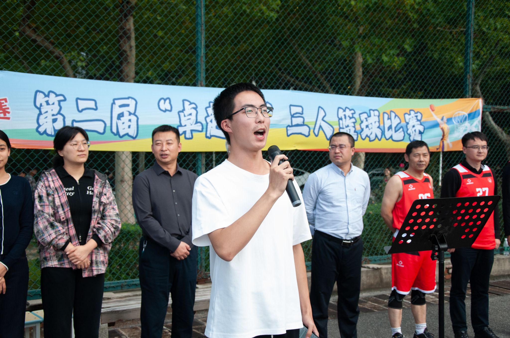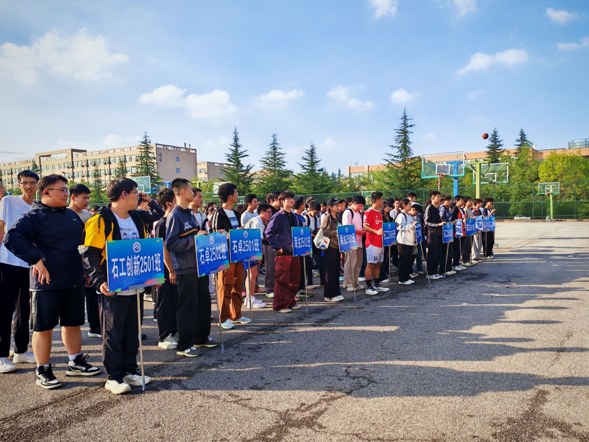 开幕式上,黄海结合“CRAZY WEDNESDAY”系列赛事开展的初衷致辞,他指出,三人制篮球考验的不仅是个人实力,更是三个人之间拧成一股绳的协作力,这与石油人“团结奋进、加油争气”的精神高度契合,希望同学们在赛场上既要比拼技术与体力,更要学会协作、锤炼心态,胜不骄、败不馁,练就坚持韧劲、协作智慧,展现石工学子积极向上、勇于拼搏的青春风采。