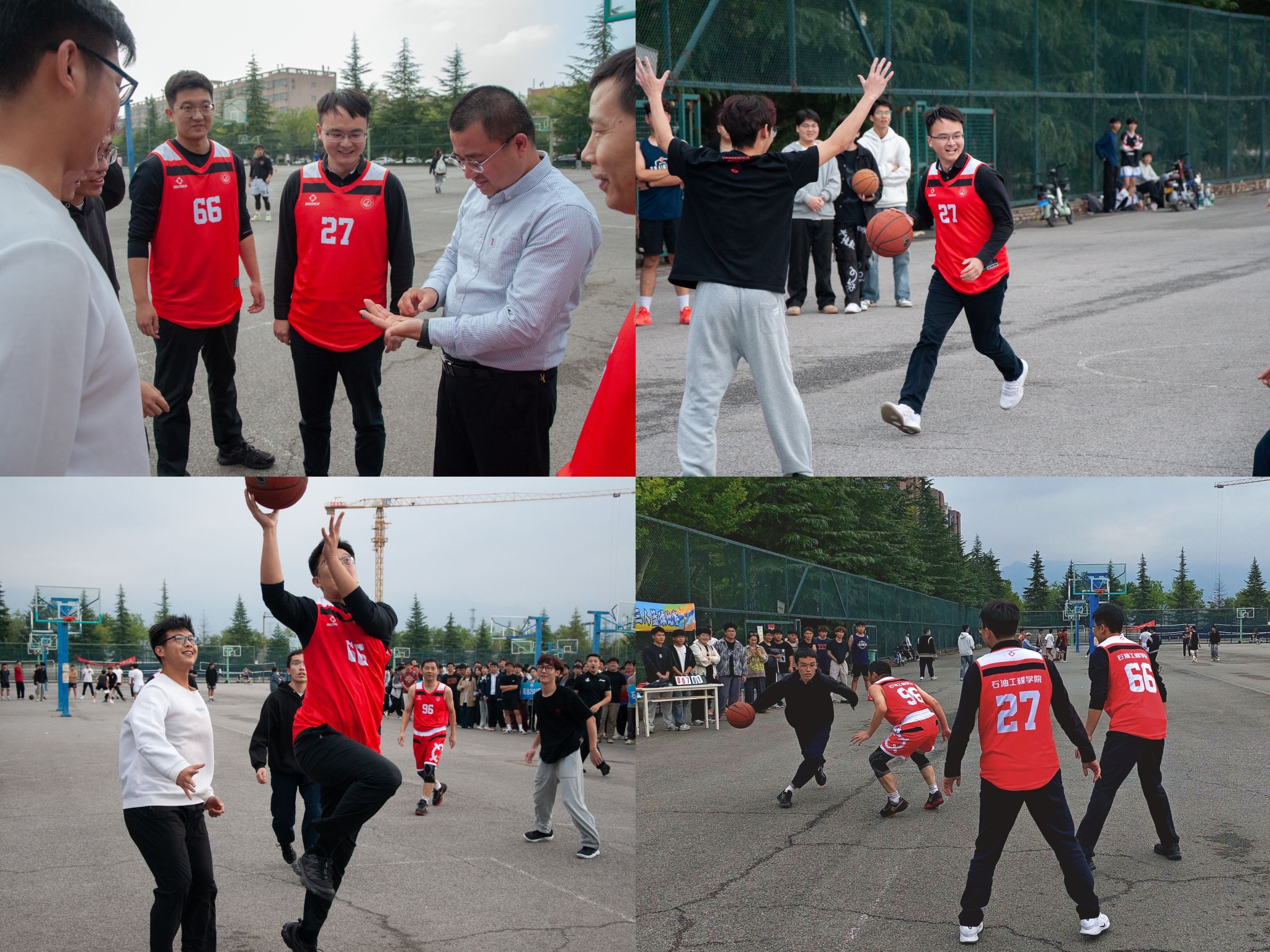 雨后初晴,秋风裹挟着青春活力吹拂校园,石油工程学院“CRAZY WEDNESDAY”(疯狂星期三)运动锦标赛系列的第二个项目,第二届“卓越杯”三人制篮球赛于10月15日在鄠邑校区、雁塔校区同步开赛。学院党委书记司马文龙、院长黄海、党委副书记艾二鑫,学生工作办公室全体辅导员参加活动。