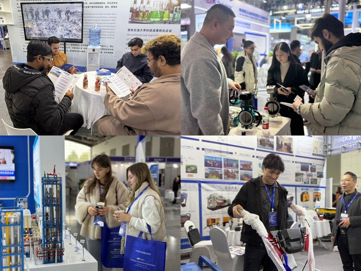 Beat365学生在西安石油大油气科技有限公司外事项目经理丹尼斯(研2022级国际校友)带领下,详细了解了该公司发展历程、运营模式、技术应用场景及科技成果转化过程。展会期间,学生们依次走访各企业展位,系统了解了石油钻采设备、油气储运设备、油气炼化及精细化工装备、泵阀、电机、仪器仪表等上中下游全产业链条物资装备。参观过程中,学生们结合专业知识主动提问,与企业科研人员深入探讨技术细节,参展代表逐一耐心解答、细致引导讲解,现场互动氛围热烈。