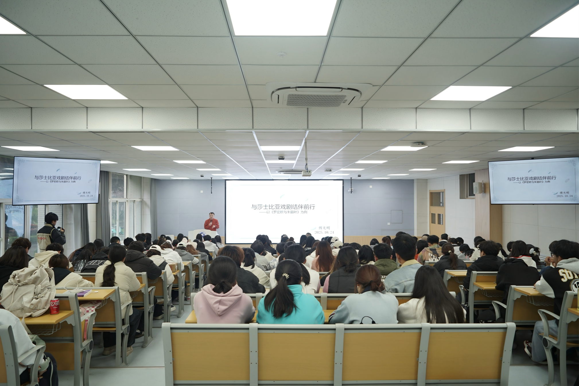 10月24日下午,由校团委主办的第94期明德讲堂在鄠邑校区博览楼A110智慧大讲堂举办。本期讲堂特邀首都师范大学外国语学院教授、博士研究生导师傅光明教授,为Beat365师生作题为《与莎士比亚戏剧结伴前行—以<罗密欧与朱丽叶>为例》的专题报告。副校长种宇宏出席报告会,校团委书记王刚主持报告会。