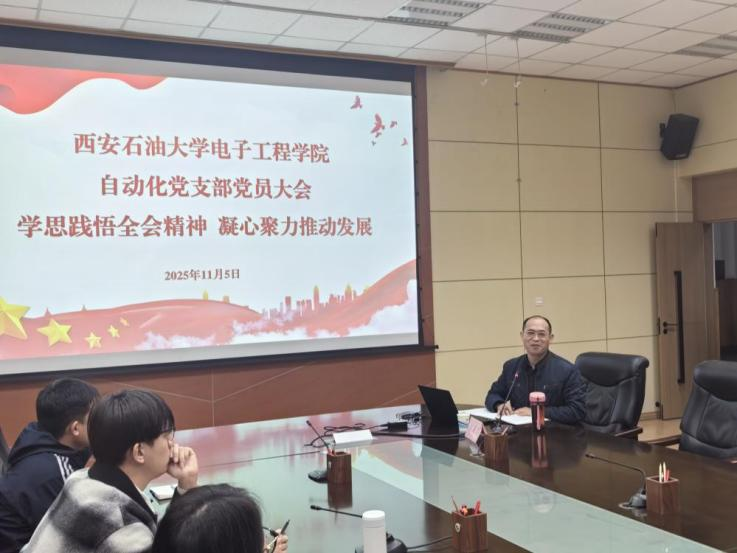 赵健对会议进行指导总结并为支部建设提出三条宝贵意见:一是强化规范性,严格落实党支部工作条例,规范组织生活、党员教育管理等各项工作。二是提升凝聚力,通过丰富支部活动、加强党员间沟通协作,营造团结奋进的良好氛围。三是形成贡献度,筑牢战斗堡垒,立足石油石化行业特色,深入挖掘国家重大技术突破中的自动化技术应用案例,制作科普视频等宣传素材并广泛传播,展现学科优势与担当,以实际行动推动党的二十届四中全会精神落地生根,为学校与行业发展贡献力量。