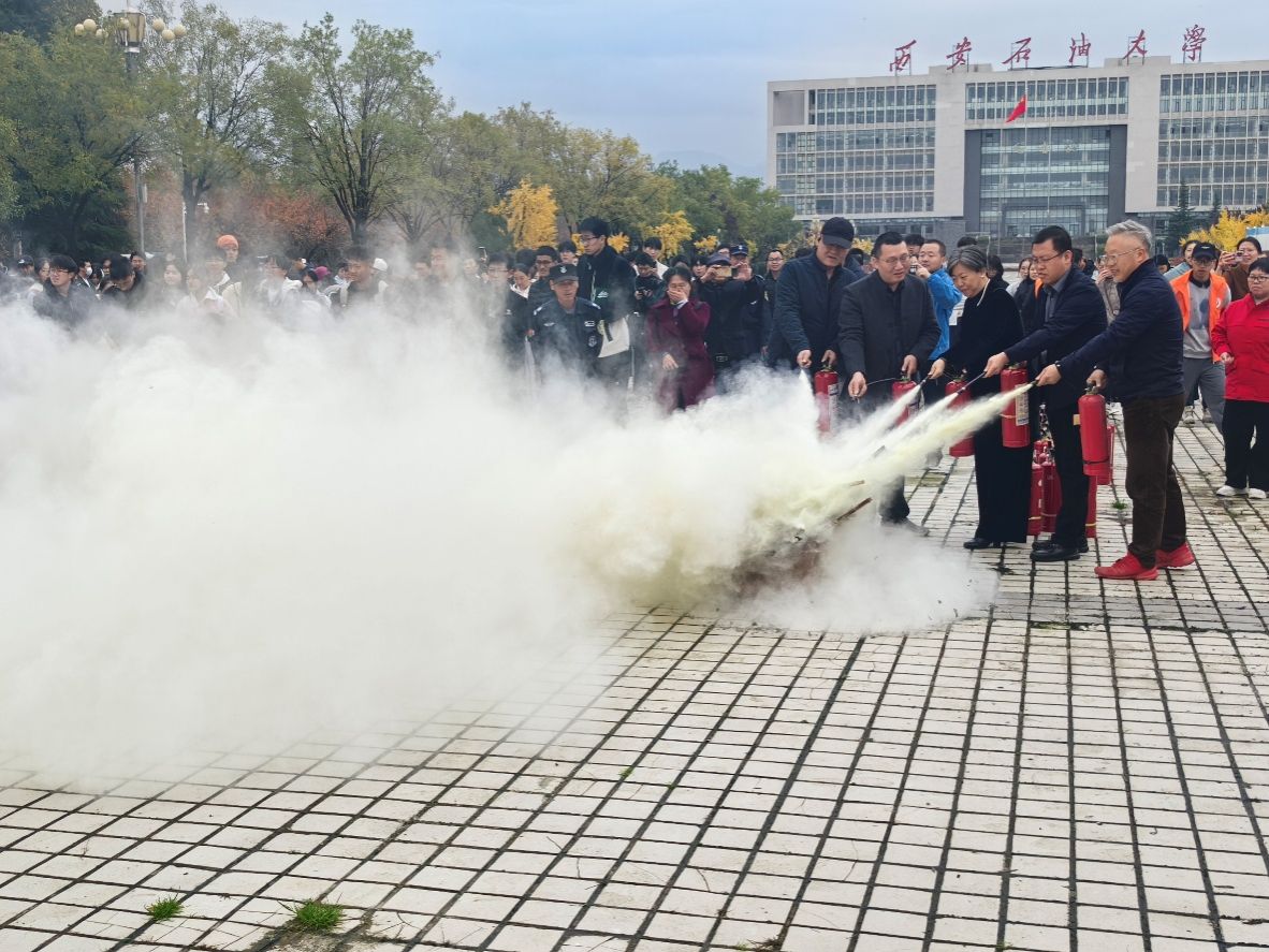 保卫处工作人员讲解了掌握灭火技能的重要性,灭火器的种类、工作原理、操作步骤以及使用过程中需要注意的细节,并演示了使用干粉灭火器扑灭初起火灾的操作方法和技巧。