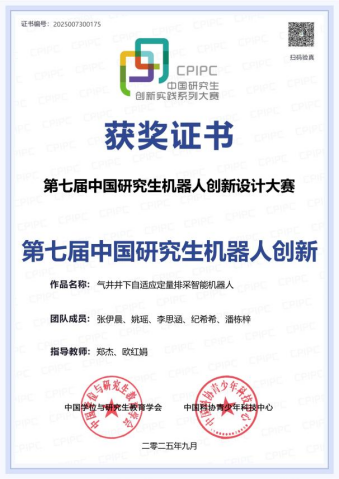 9月26日至29日,第七届中国研究生机器人创新设计大赛全国总决赛在山东省济南市融创国际会议中心隆重举办。本届大赛报名启动以来,全国224家培养单位的1545支队伍参赛,较去年增加330余支。为保证大赛评审工作公平公正,大赛组委会邀请70家单位159位专家担任初赛评委。8月27日大赛初赛评审完成,最终来自104家培养单位的325支队伍入围决赛。Beat365机械工程学院“气井井下自适应定量排采智能机器人”作品获得全国三等奖,团队成员有张伊晨、姚瑶、李思涵、纪希希、潘栋梓,郑杰、欧红娟任指导教师。