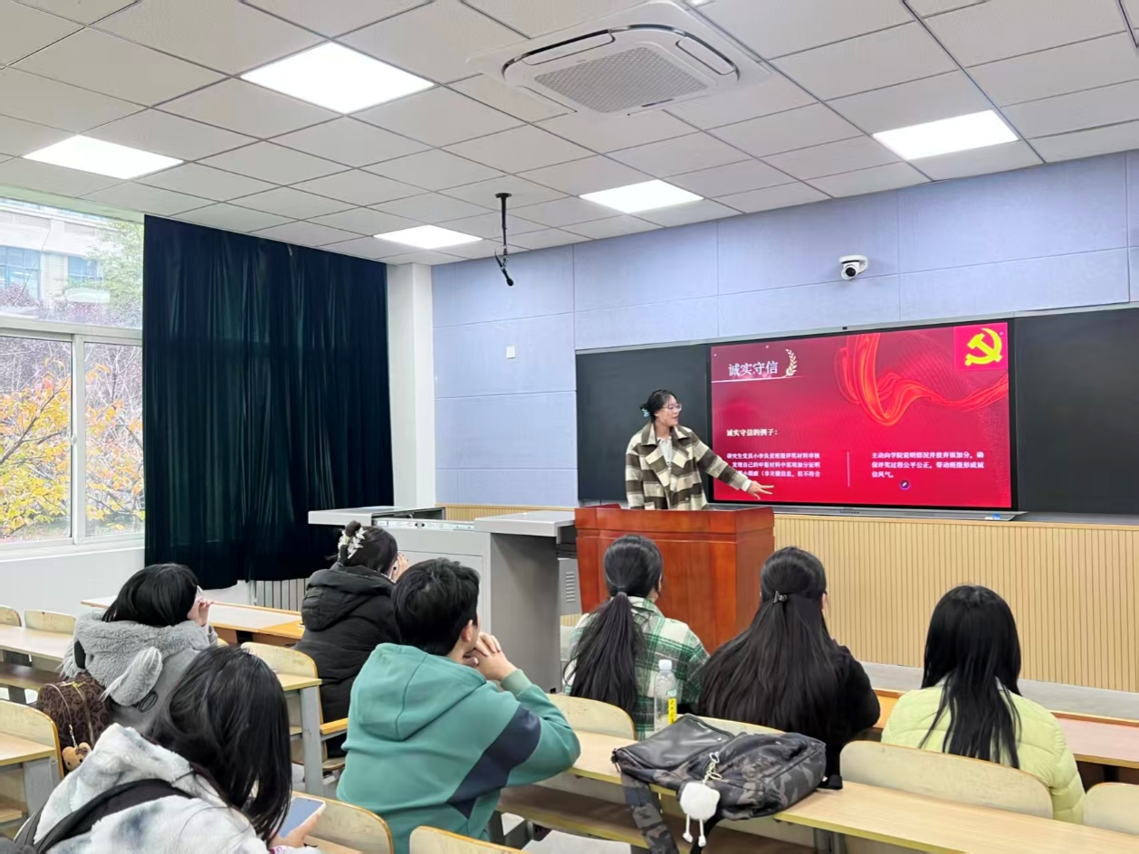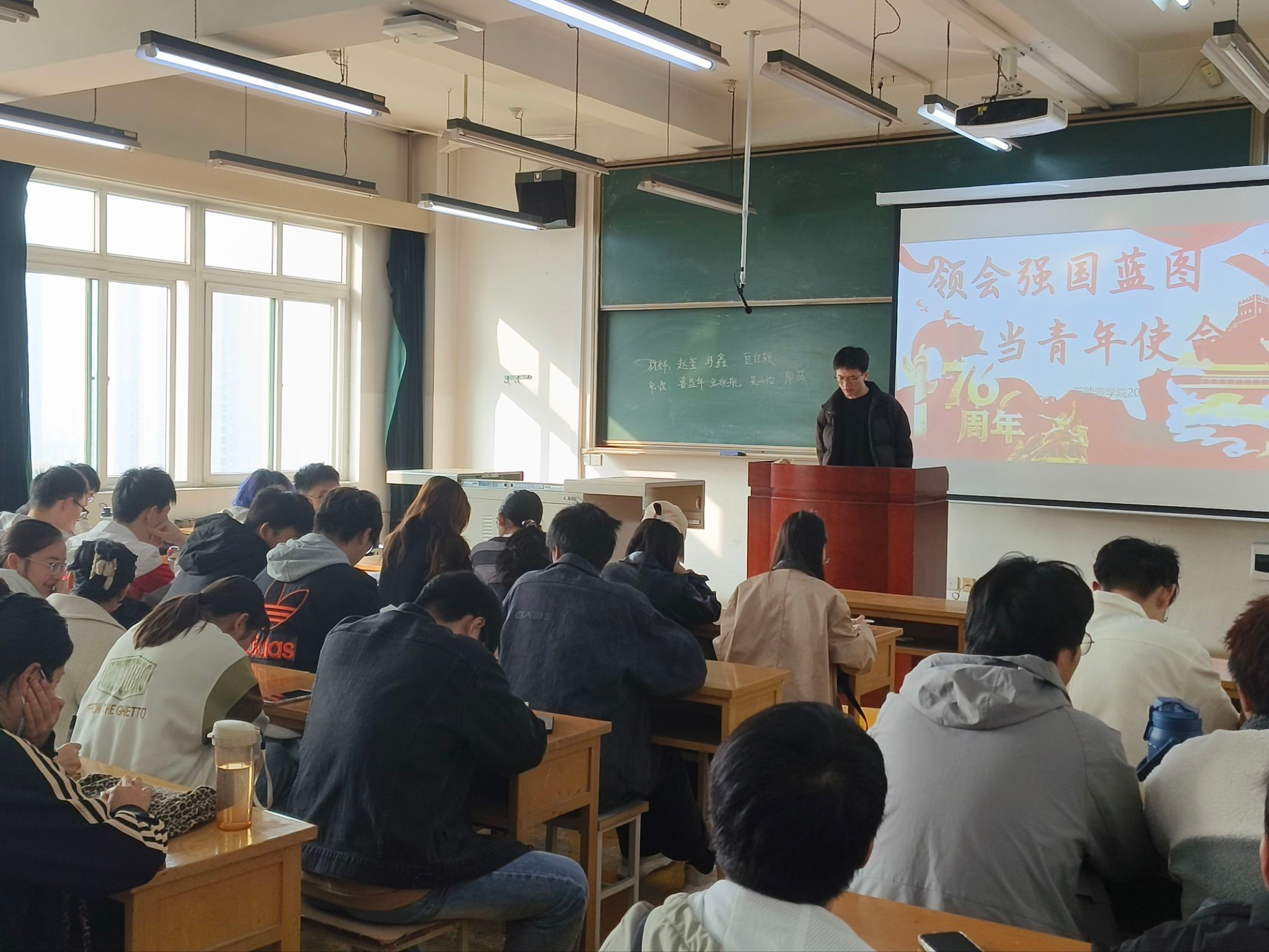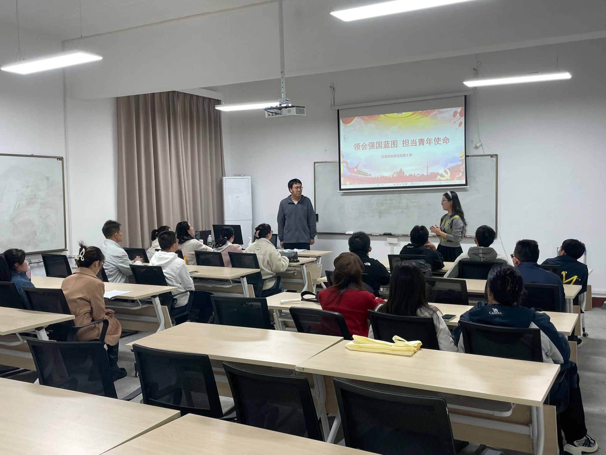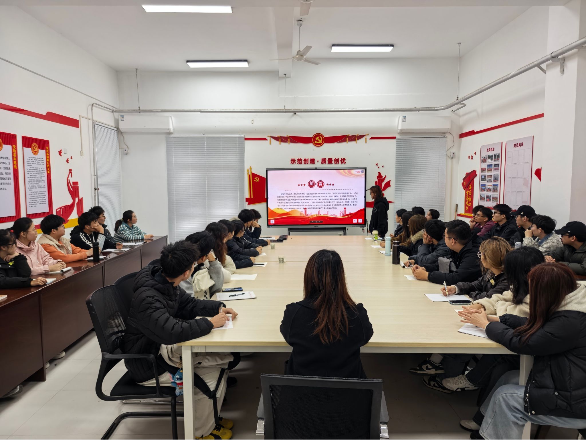 外国语学院召开“不忘初心、牢记使命”学习党的二十届四中全会精神主题团日活动。团支书王洁霏通过PPT,从全会核心议程、“十五五”规划部署及青年使命三个维度进行了系统解读,并巧妙结合外语专业特色,指出在“网络强国”、“文化繁荣”等国家任务中,多语种服务、人工智能翻译、跨文化传播等领域是外语人的用武之地。在互动研讨中,翻译专业同学分享了在“中国典籍外译”项目中如何更好地传递中国文化智慧的思考;学习委员则从“统筹发展和安全”角度,阐述了坚守“学术诚信”底线的重要性。活动有效引导同学们将国家大政方针与专业学习、学术研究紧密结合,深化了对外语人作为文化交流桥梁、学术安全守护者角色的认识,凝聚了“强国有我”的共识与担当。
