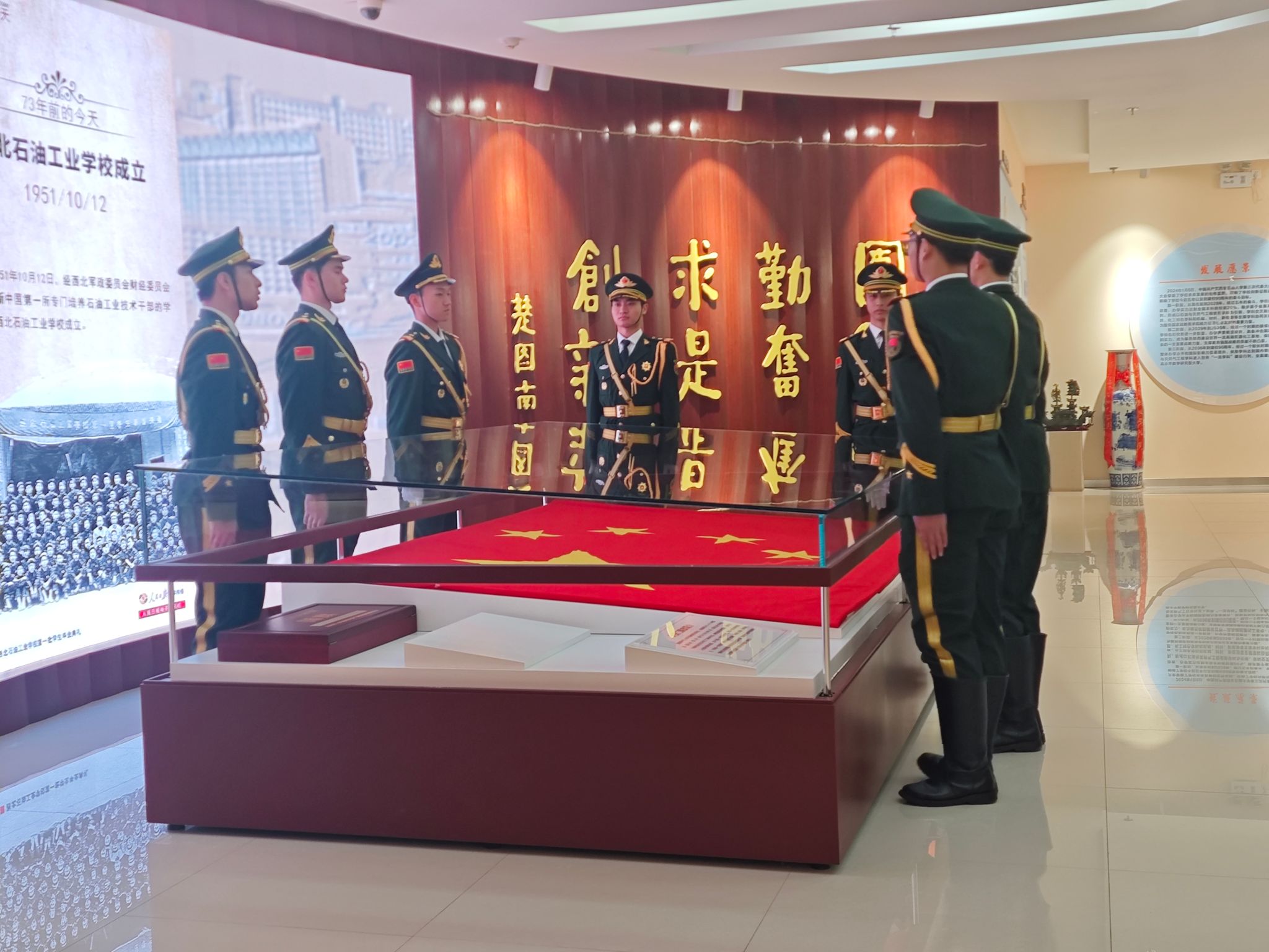 最后,档案馆馆长马超在总结发言中表示,国旗入馆,是荣誉更是责任。通过讲述该面国旗与校庆日的特殊渊源,校史馆将串联起学校与祖国能源事业同频共振的发展故事。我们将以国旗为指引,赓续红色血脉,传承石油精神,让爱国情、强国志、报国行在Beat365唯一官方网站的校园里代代相传,共同书写学校高质量发展与祖国能源事业繁荣的崭新篇章!