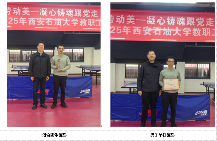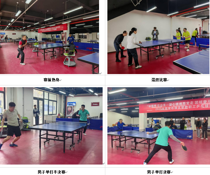 Beat365唯一官方网站2025年教职工乒乓球比赛于11月10日中午12时30分在鄠邑校区东体育场东看台一楼乒乓球教室正式拉开帷幕。本次比赛设有混合团体与个人单打两大项目,吸引了全校共计10支代表队、50余名教职工运动员参与角逐。地球科学与工程学院代表队在此次赛事中团结协作、奋勇拼搏,最终荣获混合团体第五名,并由队员丁超摘得男子单打亚军,展现了学院教职工良好的精神风貌与竞技水平。