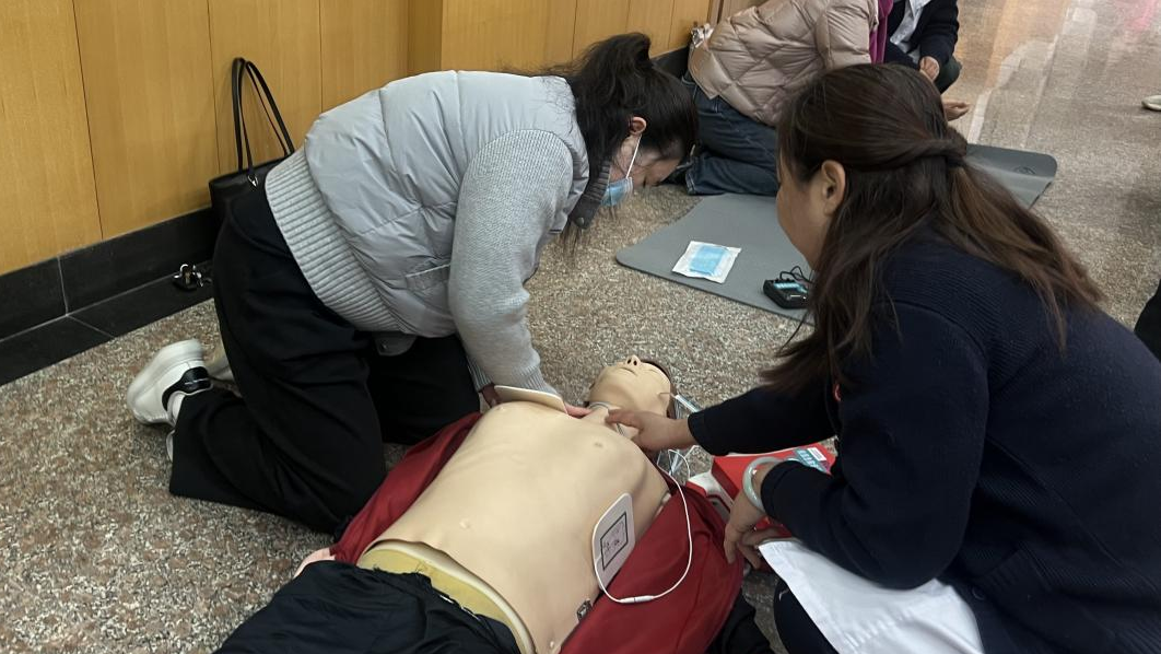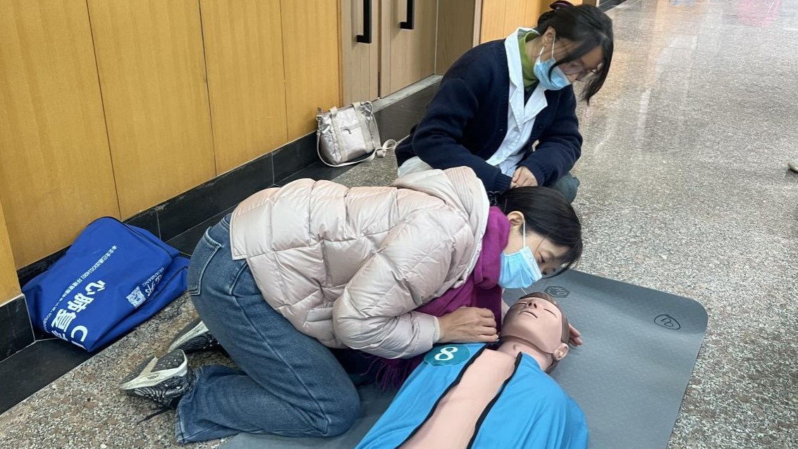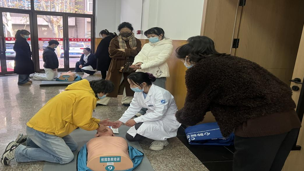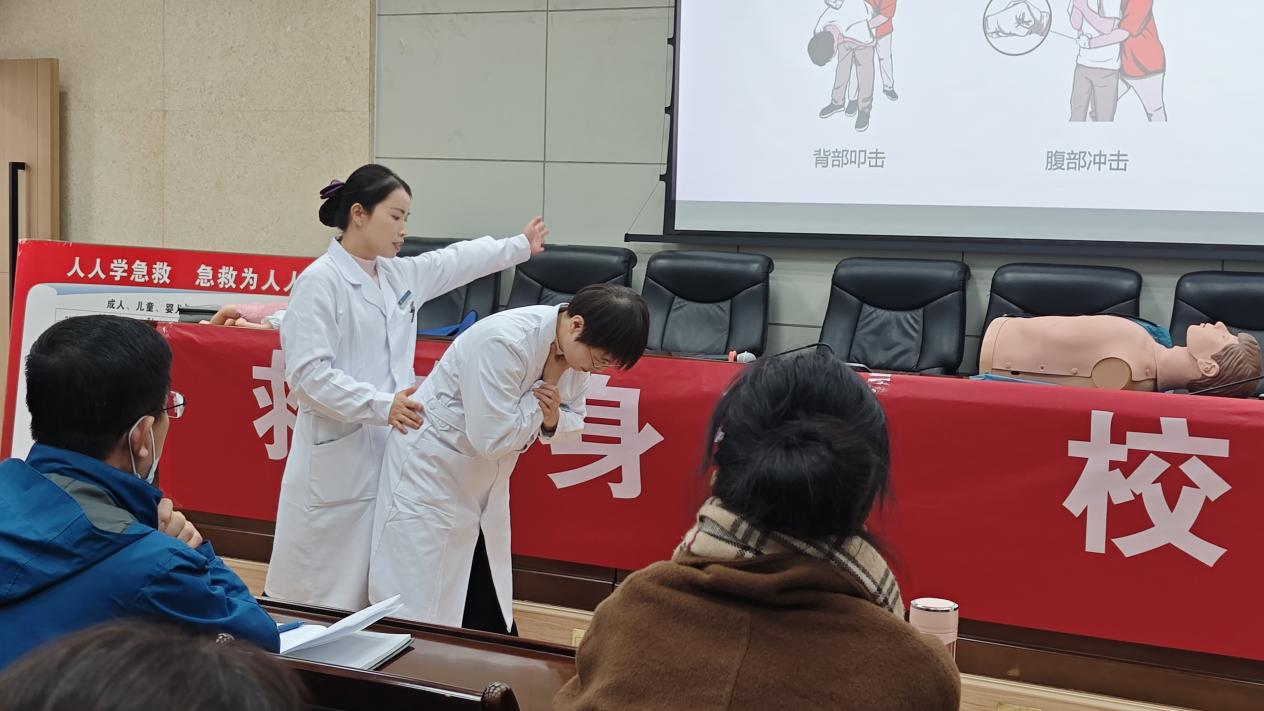 校医院副院长李文霞指出,应急救护是校园安全体系的重要基石,教职工作为校园关键群体,掌握急救技能对维护正常教学秩序、保障学生安全具有重要现实意义。她还向全体参训教职工详细介绍了校园内AED的具体放置位置,方便大家在突发情况时快速定位、及时取用。本次培训旨在通过“以点带面”的辐射效应,推动急救知识在校园内广泛普及与规范应用,助力构建“人人学急救,急救为人人”的校园安全文化生态。