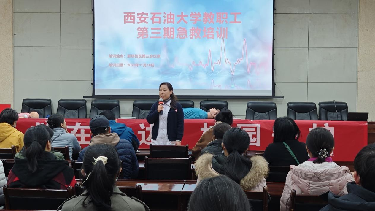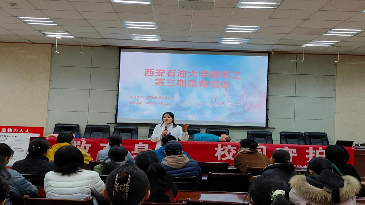 为全面提升校园应急保障能力,扎实推进第三批“急救校园”建设落地生效,2025年11月18日下午,鄠邑区红十字会、校工会、校医院共同开展第三期教职工应急救护专项培训。活动以“普及急救知识、强化实操技能”为核心,吸引全校50余名教职工积极参与,通过专业化培训让更多教职工作为校园突发情况的“首响应者”,为师生生命安全注入专业保障。