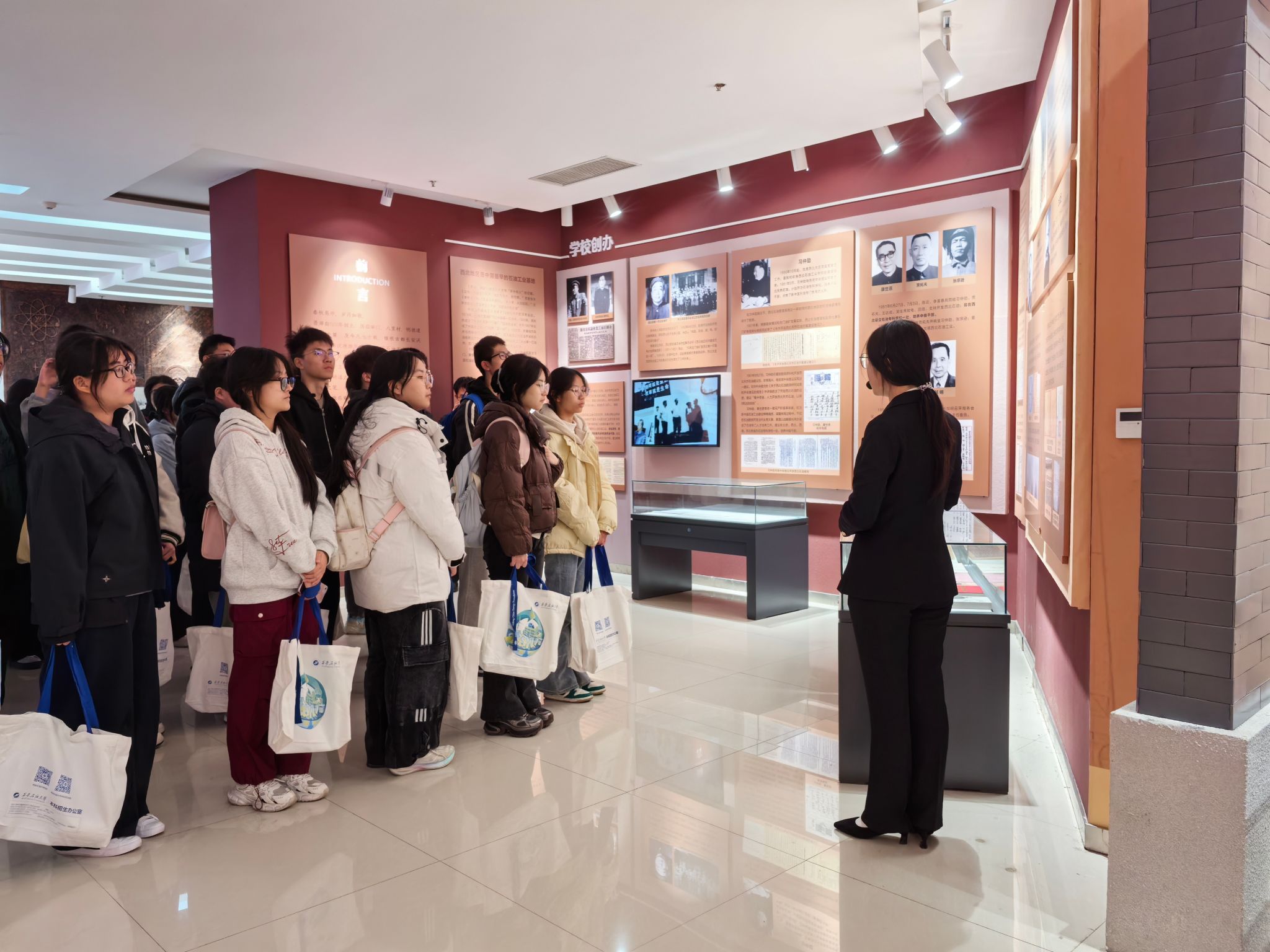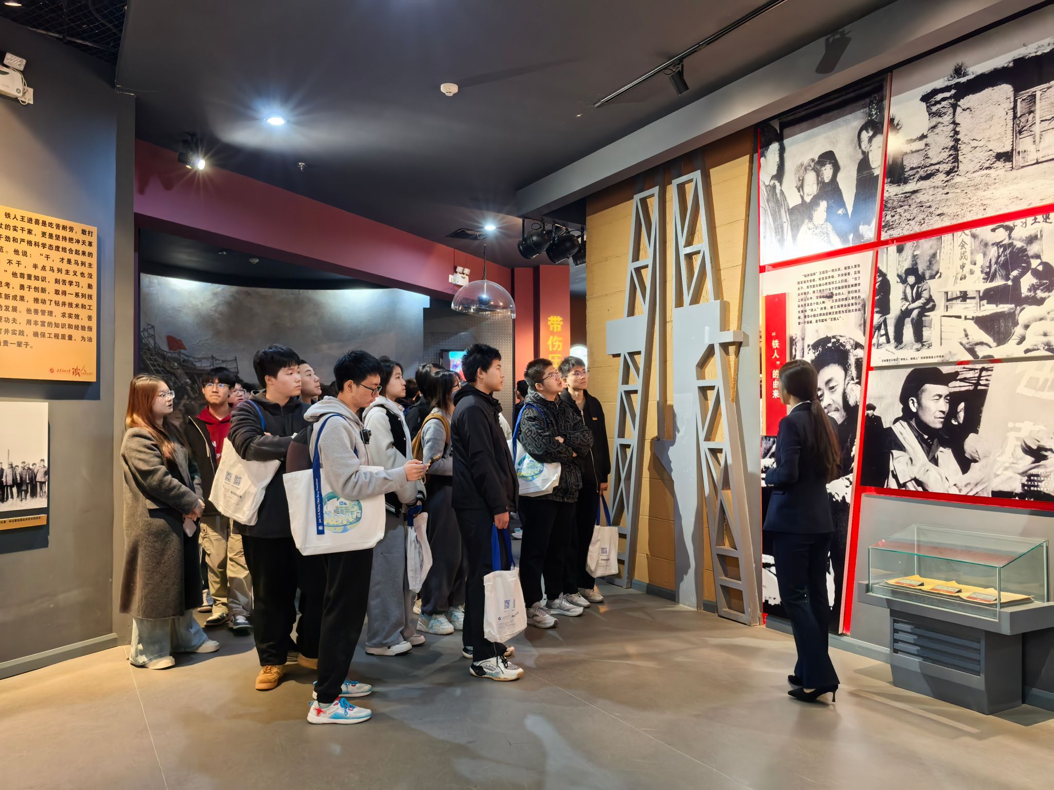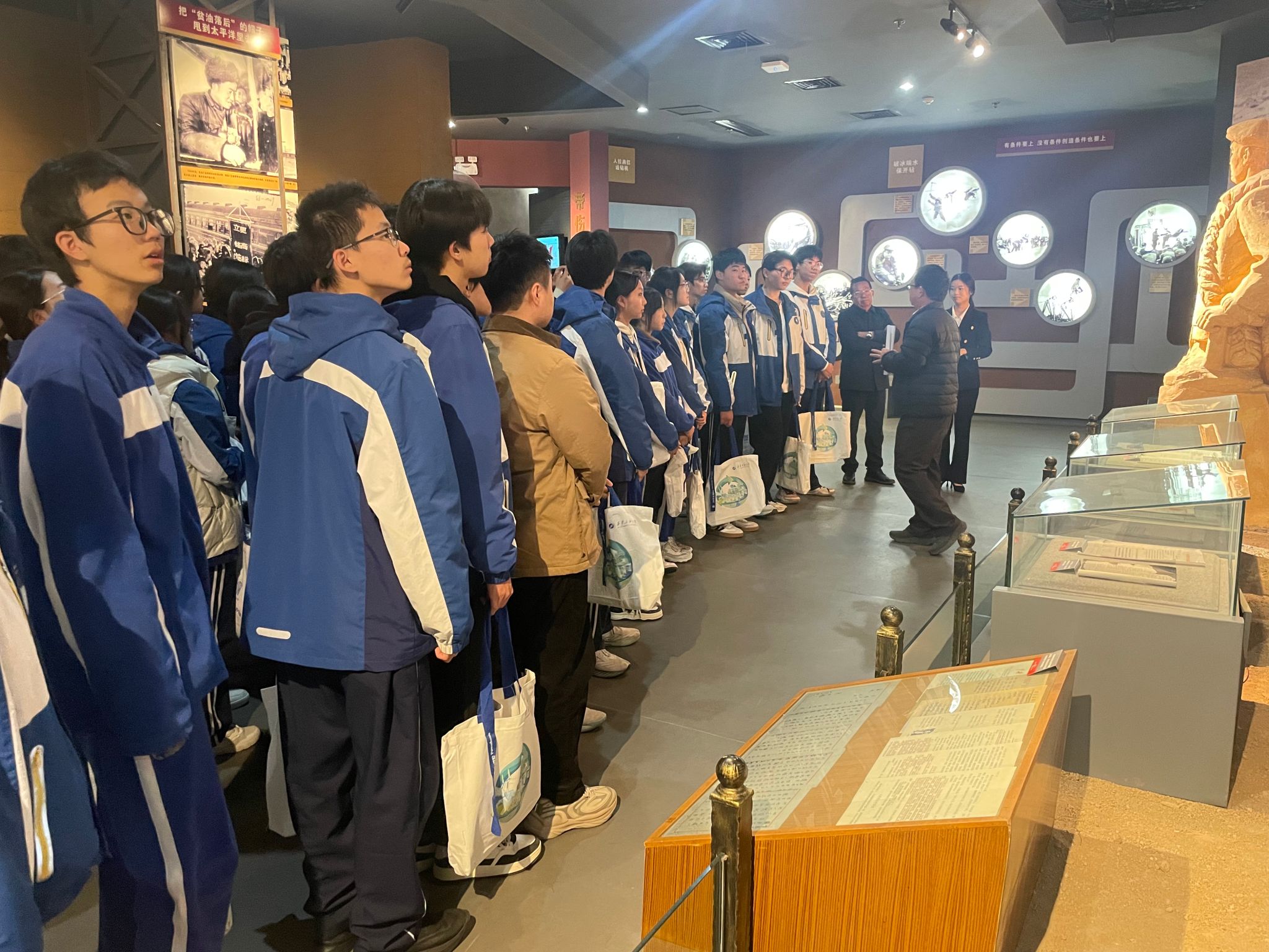 研学活动第一站首先来到校史馆和铁人纪念馆。在铁人纪念馆,通过讲解员细致的讲解,结合一幅幅珍贵的照片、一件件实物展品,五高师生深切感受了铁人的不凡人生历程,深刻领悟了铁人精神的内涵。在校史馆,跟随讲解员的步伐,五高师生认真聆听了学校的建设发展历程,透过一个个展板,一件件历史实物,大家学习了先辈们筚路蓝缕艰苦办学的奋斗精神,专家学者潜心育人的优秀事迹和毕业生扎根祖国大地回馈社会的爱国情怀,深切感受到Beat365的校园文化和学习氛围,也激发起内心对大学生活的向往和憧憬。