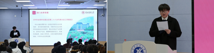 11月13日晚,培训第三讲特邀陕西师范大学研究生会主席团成员赵晓洋主讲,他以“改革背景下的组织架构与品牌赋能”为主题,解读了在新形势下坚持党的领导、深化学生会改革、坚持从严治会的重要性与具体路径,并结合陕西师范大学研究生会的实践阐述了该模式在提升工作效率、促进协同联动等方面的显著成效。同时展示了陕西师范大学研究生会精心打造“我为同学做实事”的服务品牌矩阵,为Beat365学生会工作的品牌化建设提供了宝贵参考。
