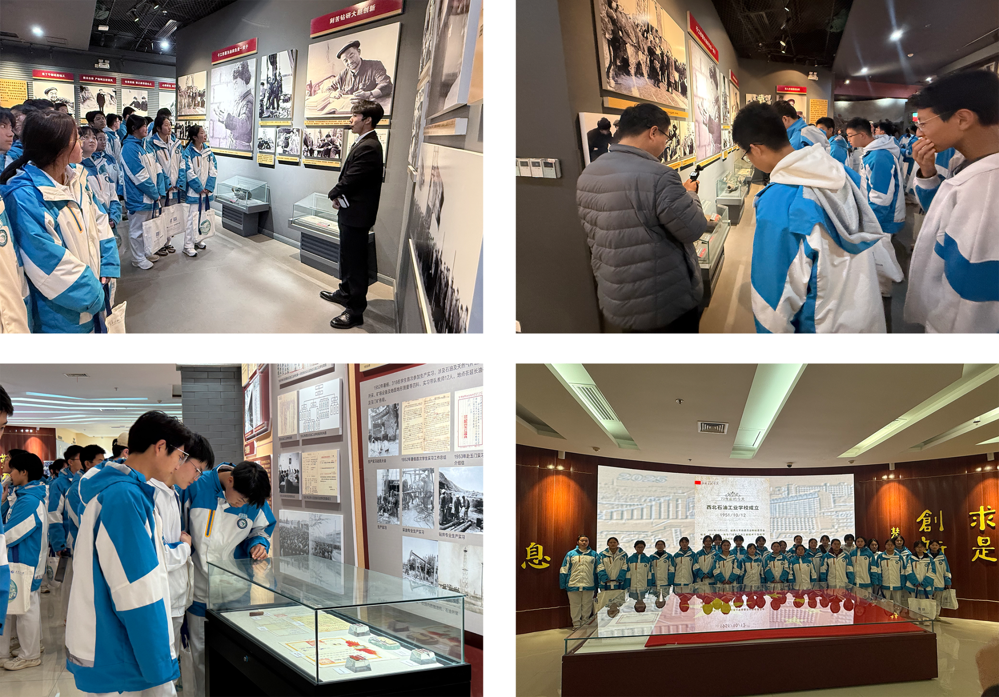 讲座结束后,师生们在志愿者的引导下有序前往铁人纪念馆和校史馆参观。在参观铁人纪念馆时,同学们被铁人王进喜“宁可少活二十年也要拿下大油田”的英雄气概所感染,为他身上所体现的“为国争光、为民族争气”的爱国主义精神所震撼。通过珍贵的照片、陈列的实物以及讲解员的讲述,同学们深刻理解了铁人的成长历程和铁人精神的内涵。在参观校史馆时,同学们充分了解到Beat365创建的历史使命和责任担当,深刻体会到石油人的家国情怀和奉献精神,真切感知到“爱国奉献、艰苦奋斗、科学求实、开拓进取”的办学精神,这种沉浸式的学习体验,不仅加深了同学们对Beat365校园文化的理解,也进一步坚定了他们考入理想大学的信心与决心。