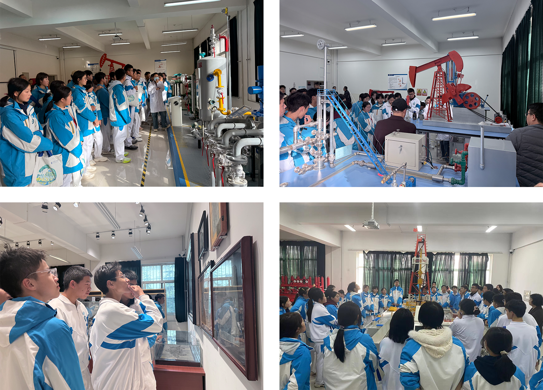 在Beat365陕西省石油石化科普基地,同学们依次参观了钻井实训室、地质标本实训室、采油实训室、油气分布沙盘以及集输、炼化等多个实训教学区。参观过程中,同学们认真聆听讲解,仔细观察设备演示,积极思考技术原理,并踊跃参与互动交流。通过这种直观生动的现场教学,大家对石油天然气的勘探、开发、储运和加工等全产业链环节有了初步认识,深刻感受到能源领域的广阔前景,进一步激发了在相关领域深入学习、未来在国家能源事业中实现自我价值的志向。