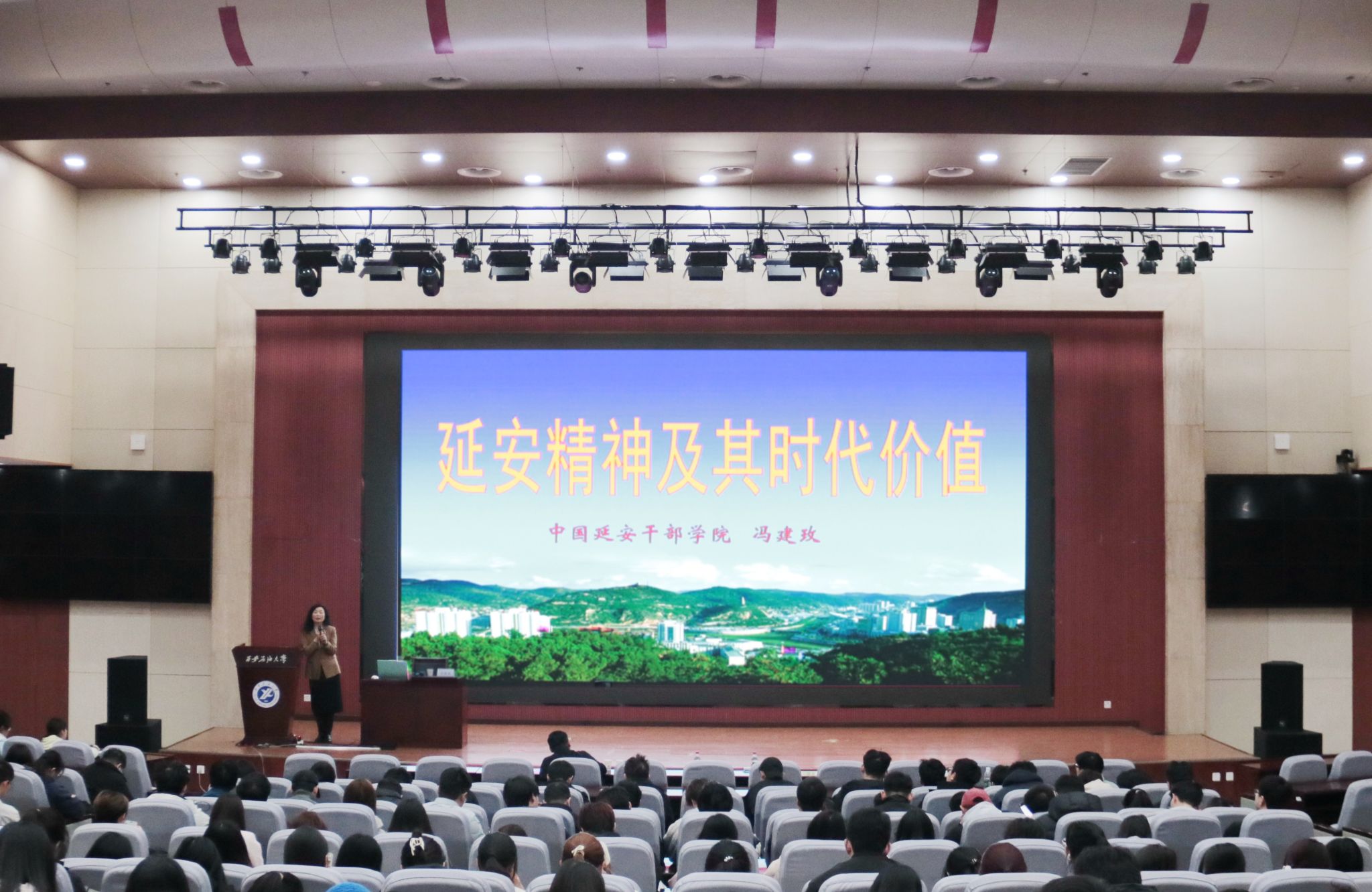 冯建玫教授围绕“延安与延安时期”“中国革命的圣地 新中国的摇篮”“弘扬延安精神 赓续红色血脉”三个层面展开,通过丰富的历史资料,生动呈现了延安时期的革命实践,系统梳理了延安精神的形成脉络与历史意义,并阐释了其作为中国共产党人精神谱系重要组成部分的时代价值。报告内容既有理论深度,又有现实意义,帮助师生更全面理解延安精神的丰富内涵。