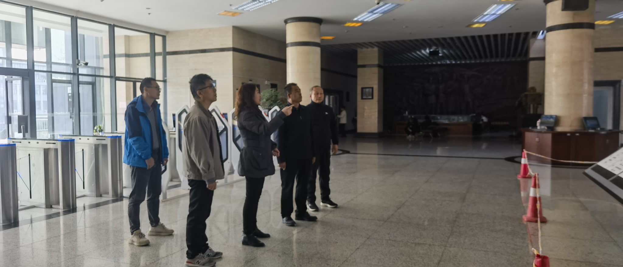 在检查过程中,程副书记就个别学生在馆内违规吸烟,在阅览区不当饮食影响他人学习,阅览室部分玻璃老化,走廊地板砖松动,个别墙体瓷砖脱落,暖气管道漏水等安全隐患逐一做了指示,并就下一步整改提出了解决方案。