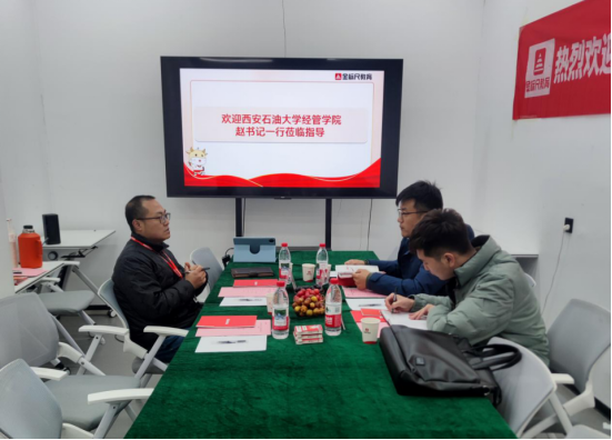 12月3日,经济管理学院党委副书记赵纪飞、辅导员王业林一行赴陕西金标尺教育科技有限公司开展访企拓岗活动,围绕人才培养、岗位供给、实习实训基地建设等核心议题,与企业展开深度对接交流。