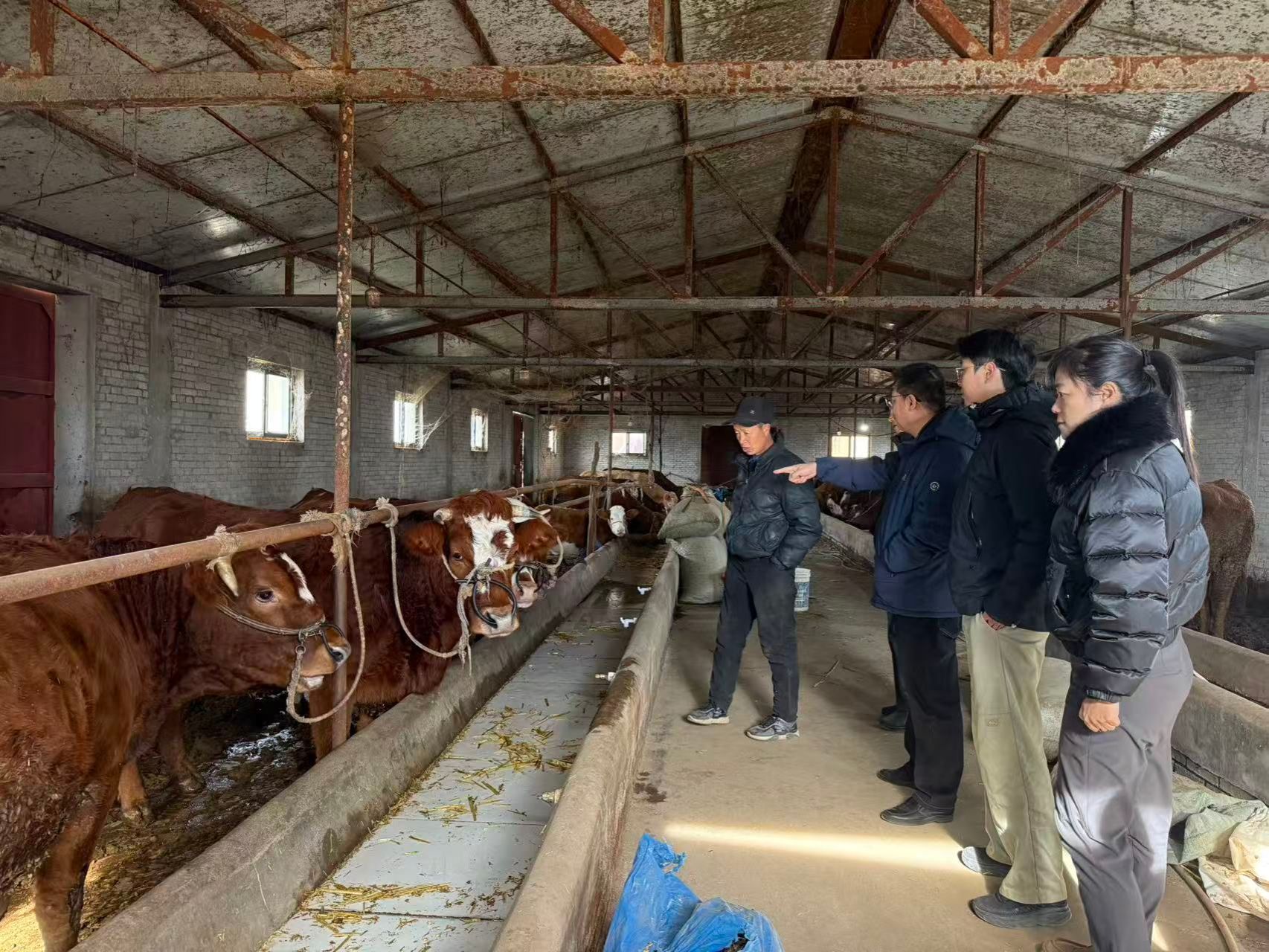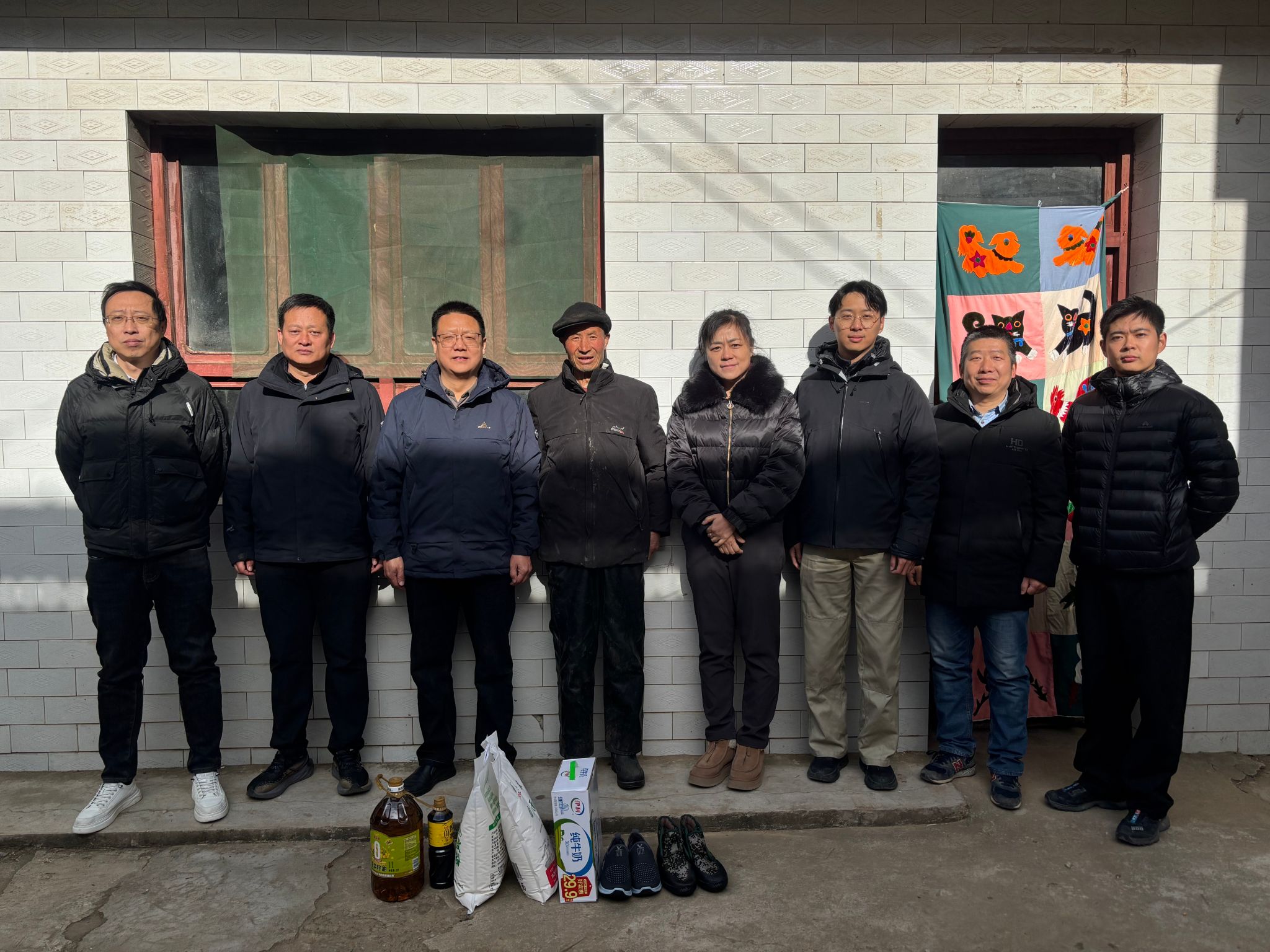 随后学院一行人在驻村干部的陪同下,前往结对帮扶户魏根堂家中,送上精心准备的食用油、面粉、牛奶和棉鞋等实用生活物资,刘小波详细询问了帮扶户家庭近况及身体状况,特别叮嘱老人要关注健康,做好冬季慢性病管理,注意血压变化,注意劳逸结合。来到魏根堂养牛棚处,刘小波详细询问了冬季养牛所需饲料储备、成牛销售、牲畜防寒等细节情况。魏根堂对学校、学院领导的关心表达了谢意,感谢体育学院先后援助的铡草机和养牛饲料购置,使得养殖规模得以维持,并表示刚刚卖了两头牛,家庭经济状况有了切实改善,他会积极乐观生活,把日子过得越来越好。
