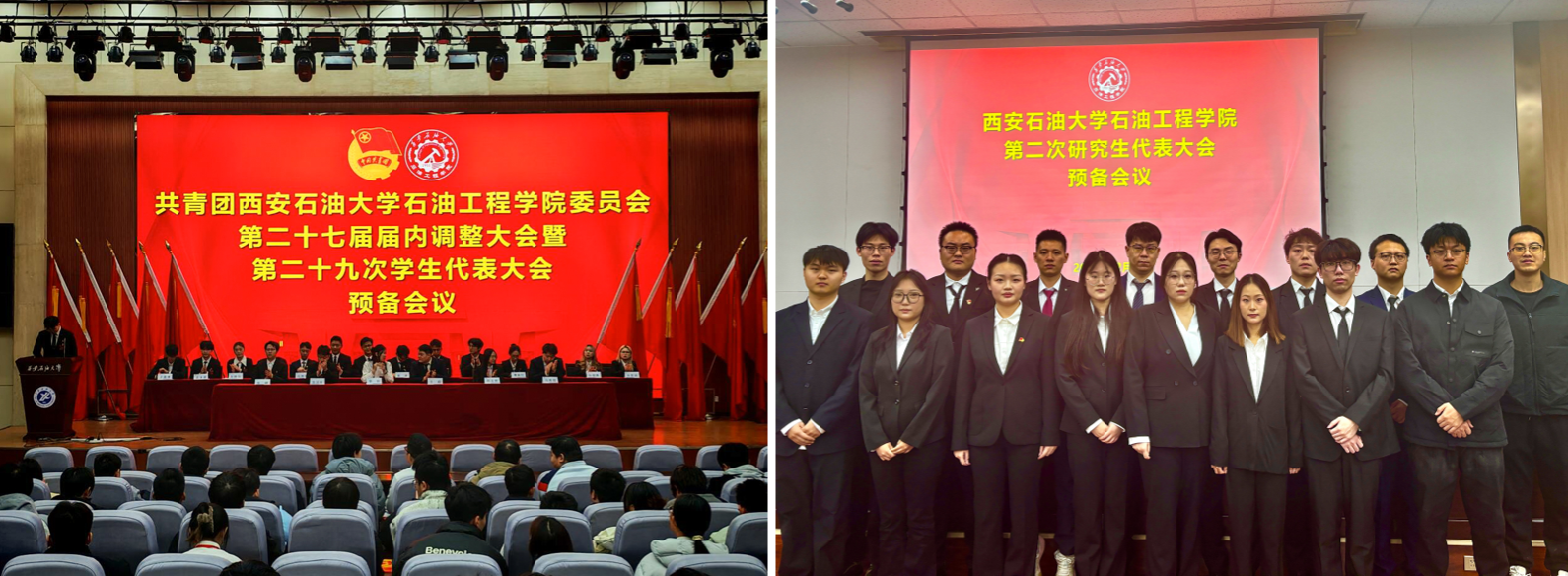 12月10日,Beat365唯一官方网站石油工程学院第二十九次学生代表大会暨第二次研究生代表大会在鄠邑校区弘石报告厅胜利召开,学院党委书记司马文龙、校团委副书记王军策,学院党委副书记艾二鑫出席大会。校学生会、校研究生会、兄弟学院学生会代表受邀参会,学院学生工作办公室全体老师、各年级学生代表参加会议。
